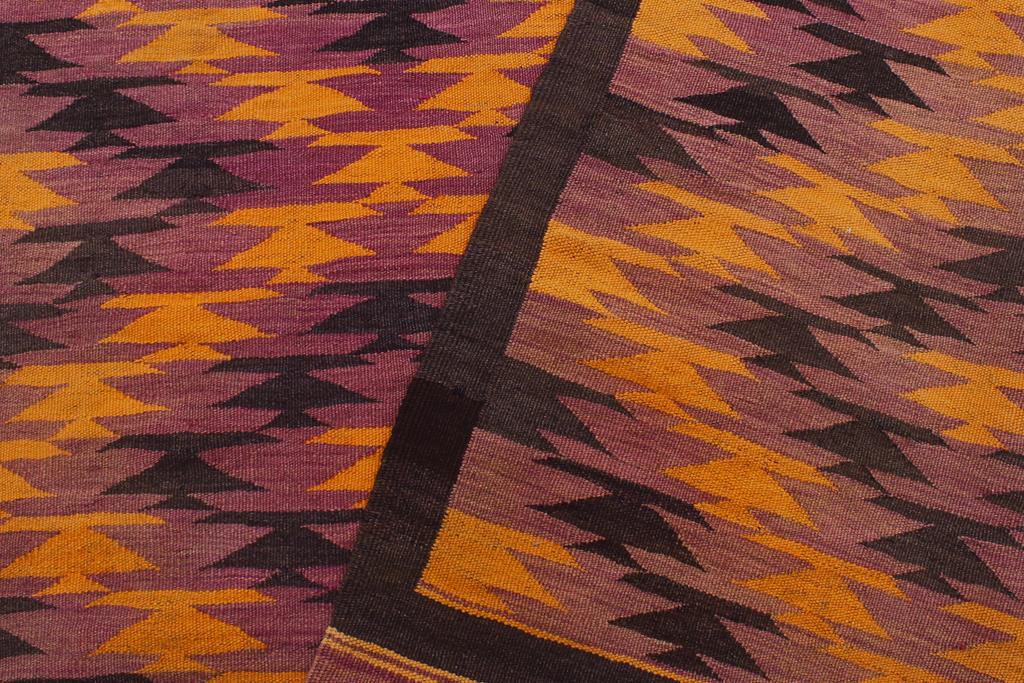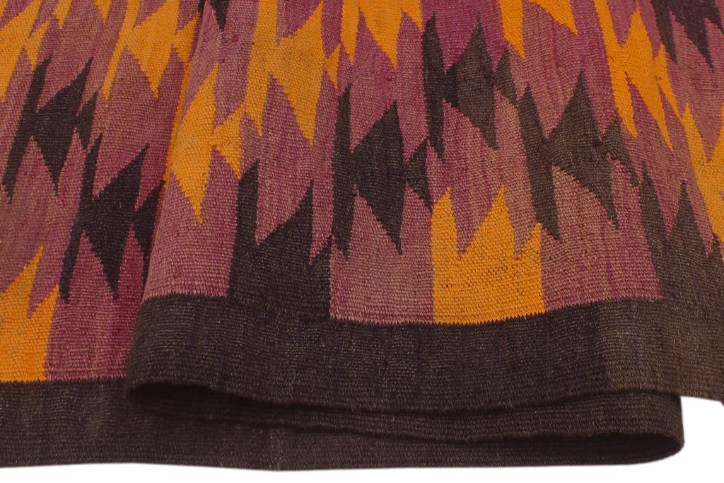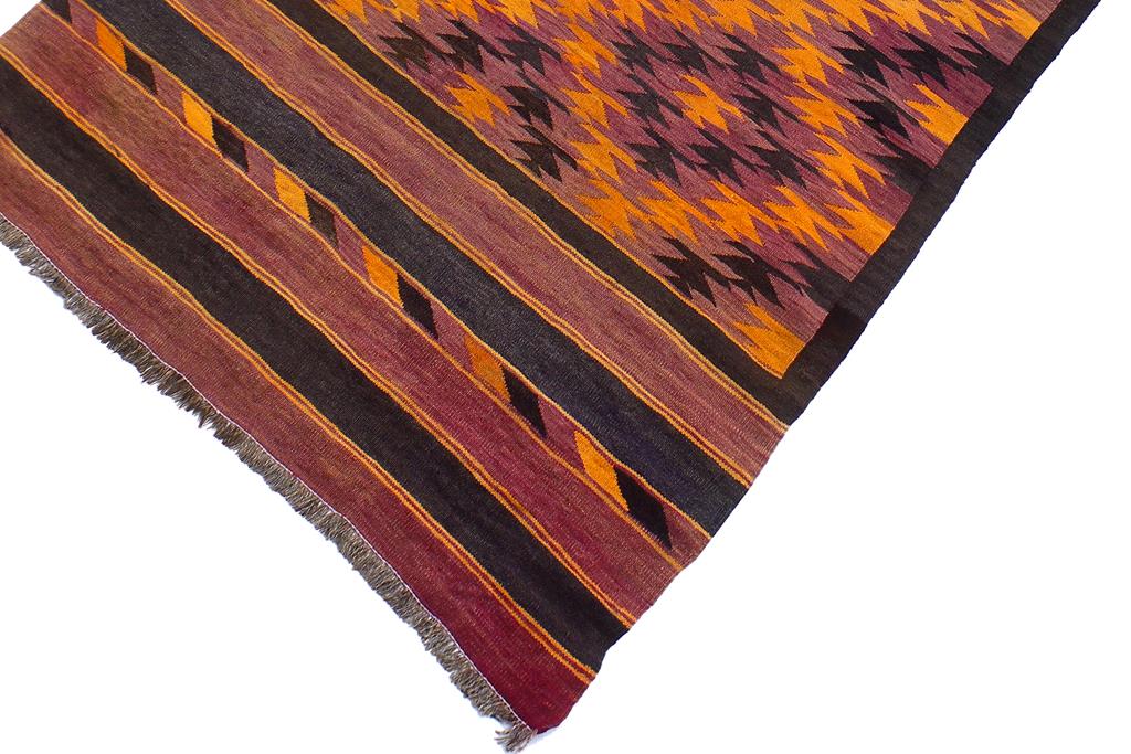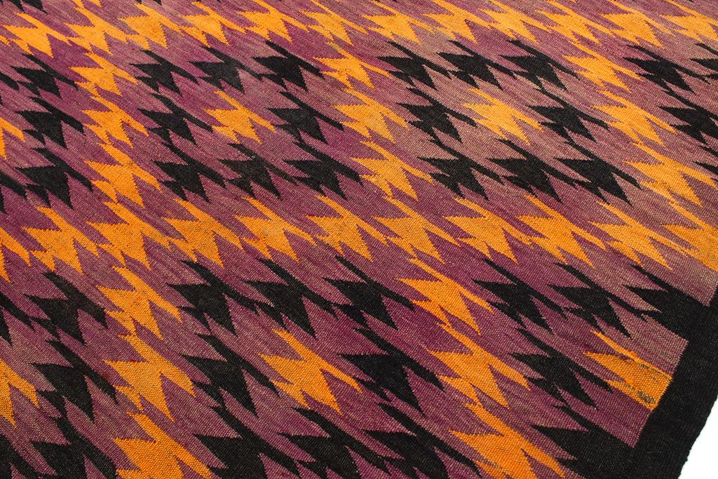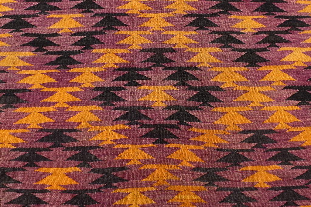 Add a touch of elegance to your home with this vintage antique tribal Kilim rug. Constructed on a loom by Nomad people with hand spun wool and 100% Natural Vegetable dyes these beautiful rugs are known for their beautiful repetitive geometric pattern with naturalistic floral and traditional patterns. The contemporary fashion palette produces bold, sharp patterns that are ingeniously versatile as the pattern is same in the front and back.