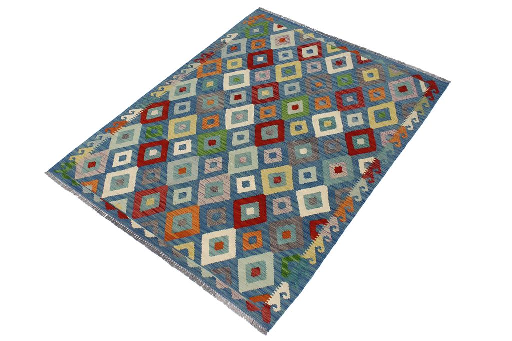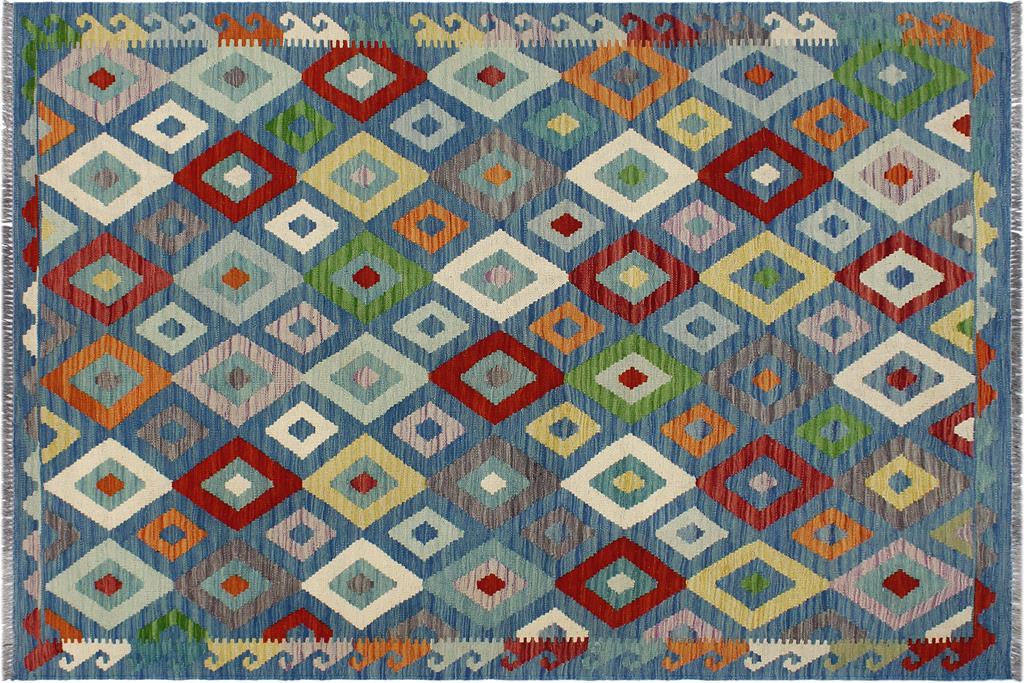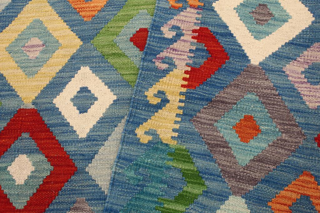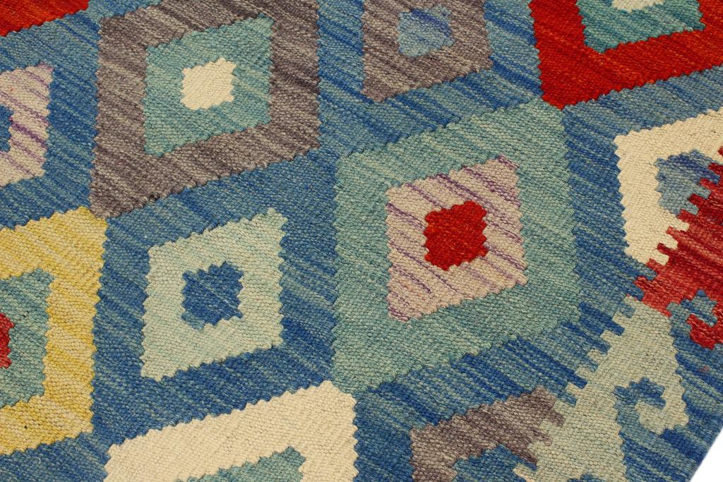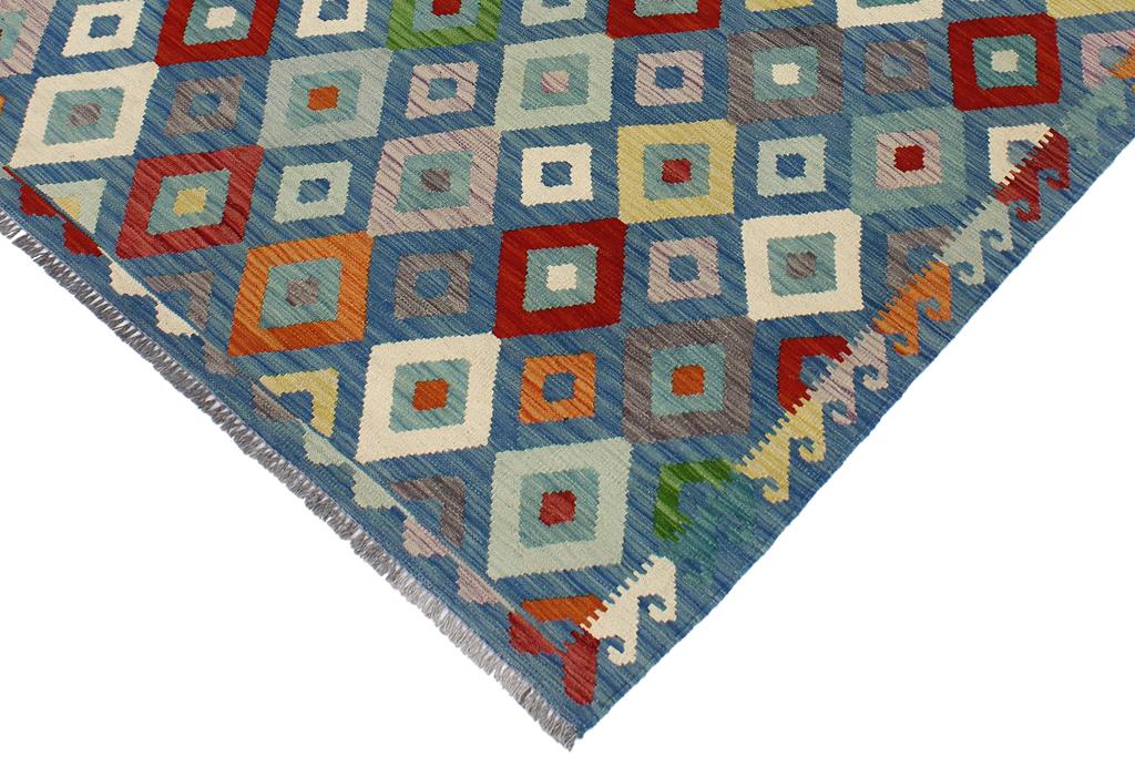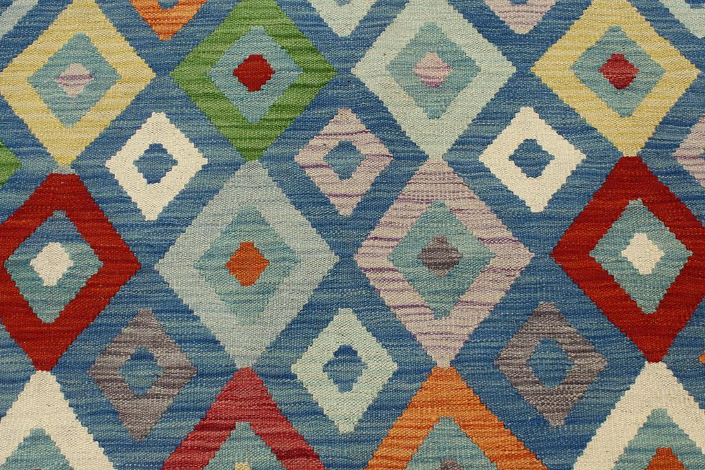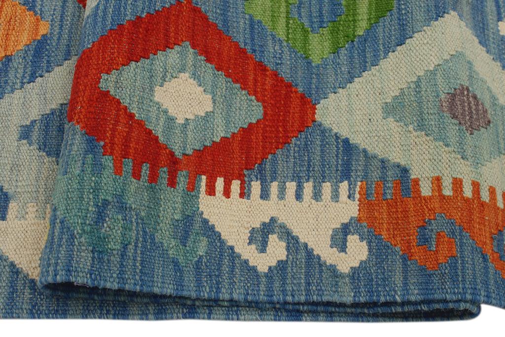 Add a touch of elegance to your home with this tribal Kilim rug. Constructed on a loom by Nomad people with hand spun wool and 100% Natural Vegetable dyes these beautiful rugs are known for their beautiful repetitive geometric pattern with naturalistic traditional and modern patterns. The contemporary fashion palette produces bold, sharp patterns that are ingeniously versatile as the pattern is same in the front and back.