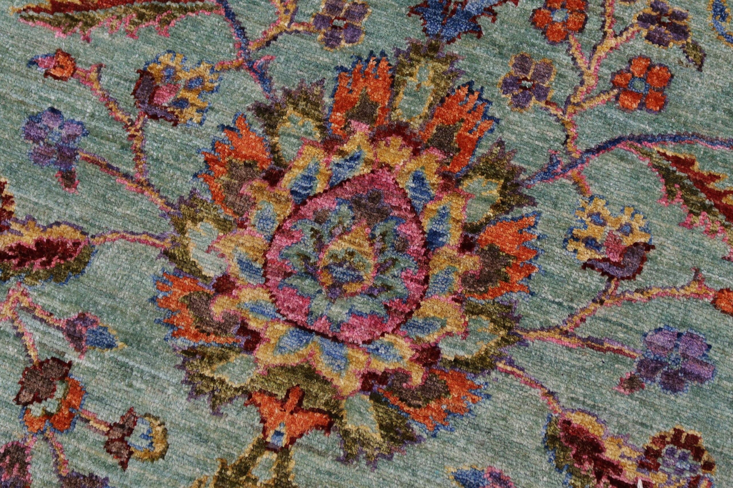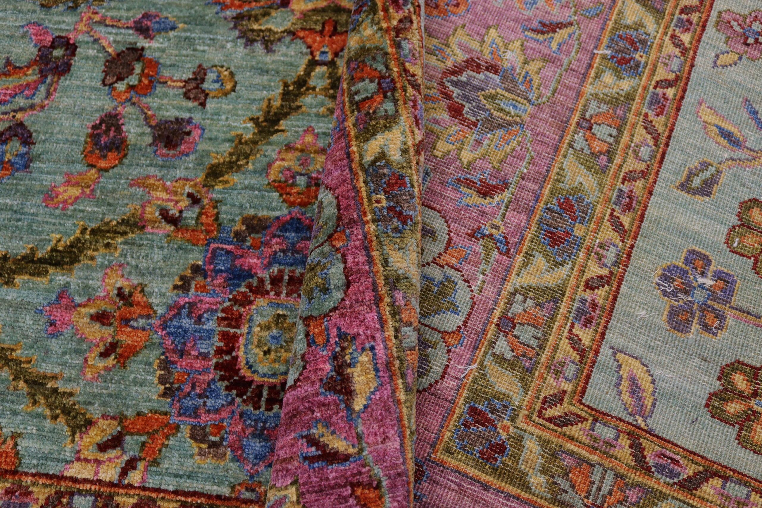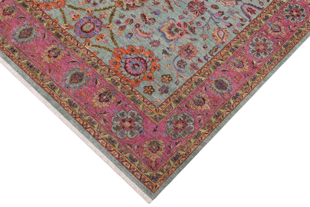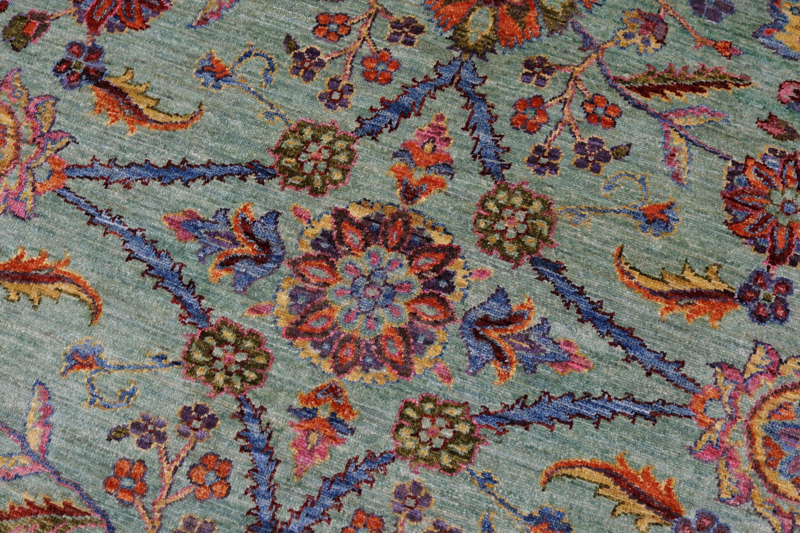Designed with a mesmerizing intricate traditional motif this glorious hand knotted rug is a masterpiece that will fill any space with sophistication and grace. An exhilarating color pallet with an elaborate design, this masterpiece features luxurious hand spun wool with all vegetable dyes to add comfort and style to your décor. The design, color and beautiful chromatic composition with a sheen in traditional and transitional designs, exude beauty, elegance and quality make this rug a masterpiece of its own.