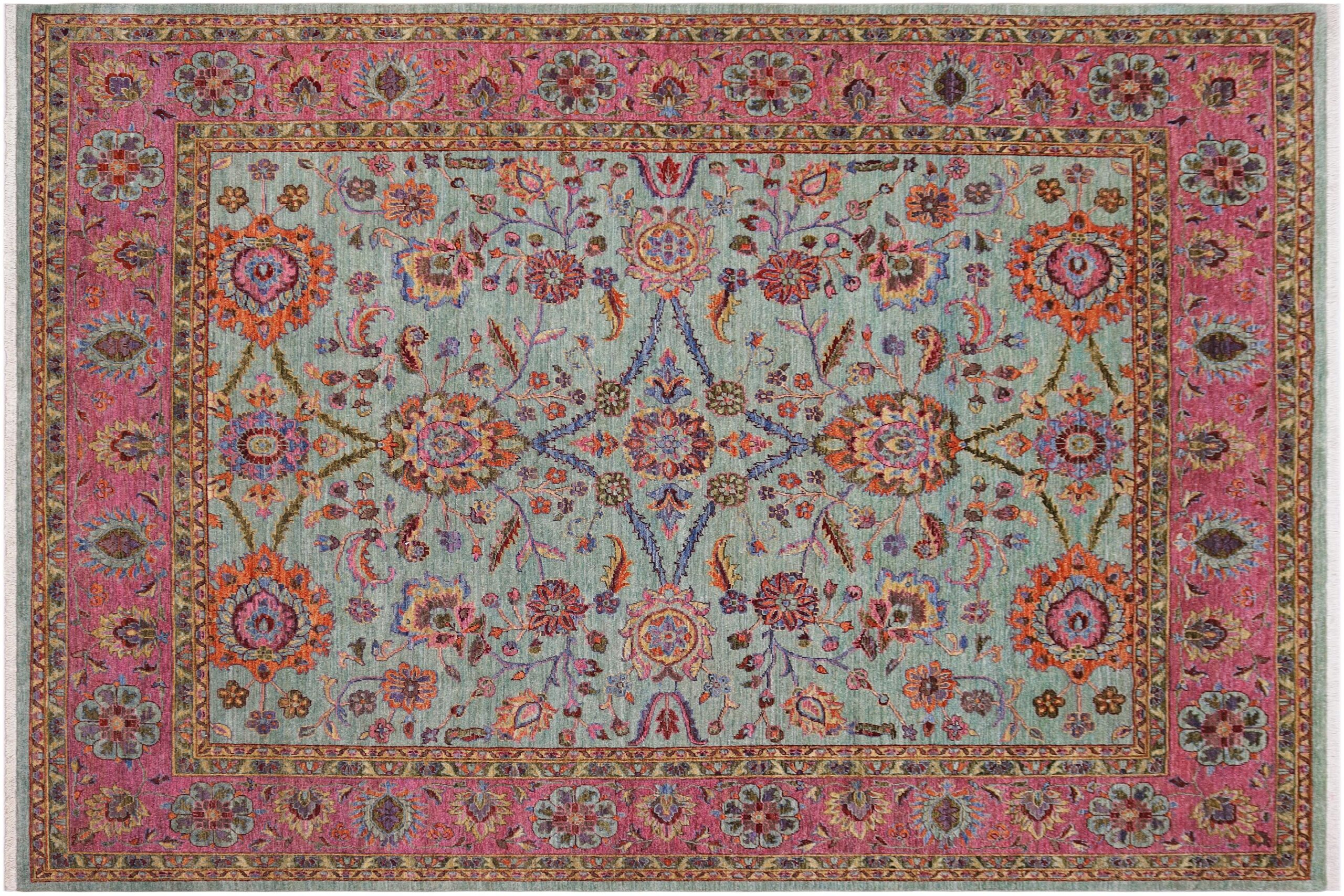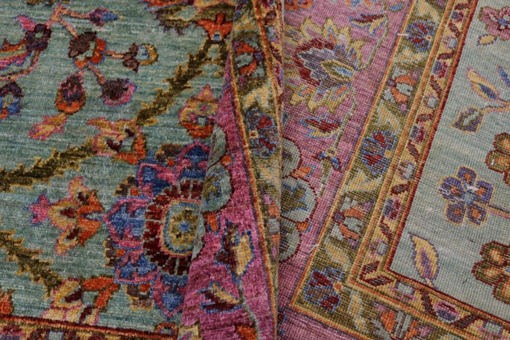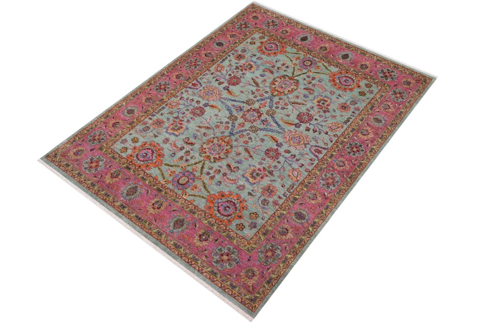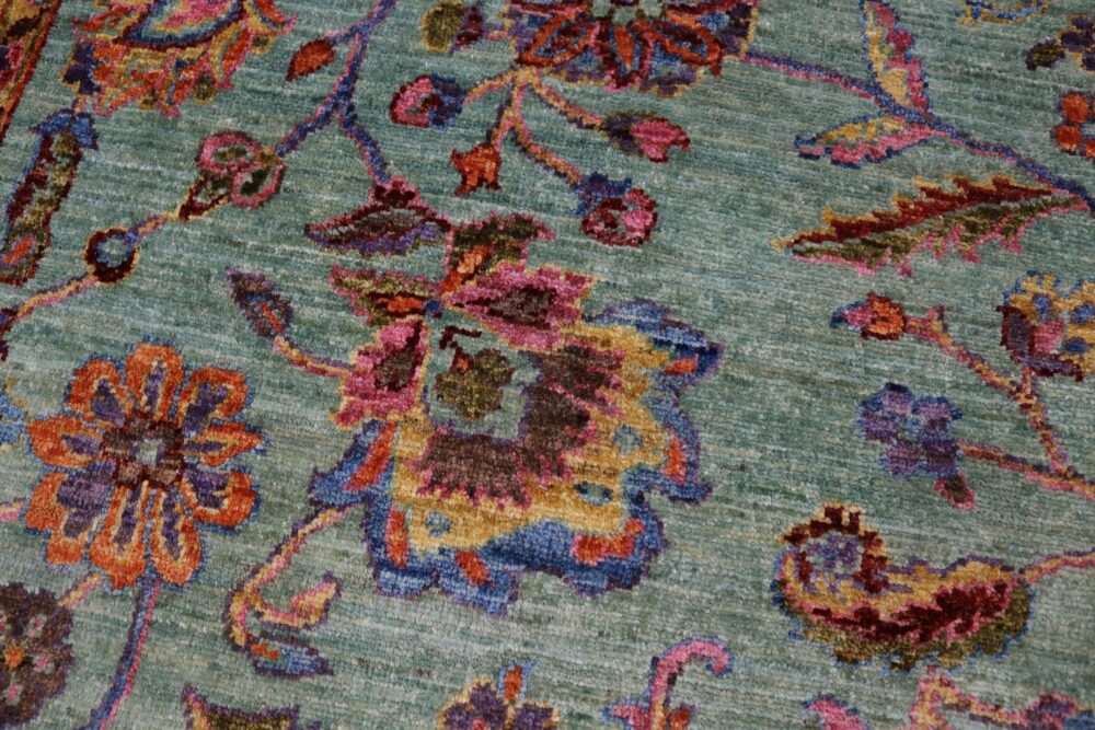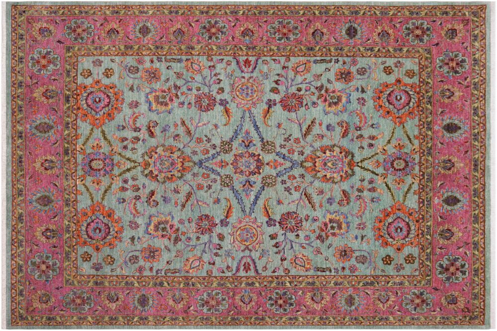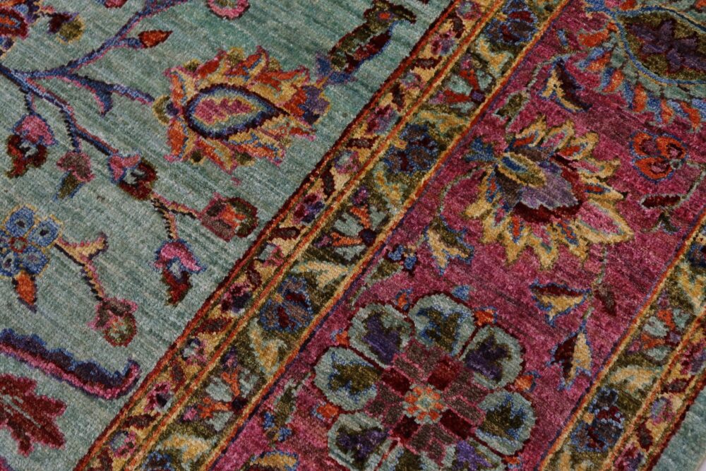 Designed with a mesmerizing intricate traditional motif this glorious hand knotted rug is a masterpiece that will fill any space with sophistication and grace. An exhilarating color pallet with an elaborate design, this masterpiece features luxurious hand spun wool with all vegetable dyes to add comfort and style to your décor. The design, color and beautiful chromatic composition with a sheen in traditional and transitional designs, exude beauty, elegance and quality make this rug a masterpiece of its own.