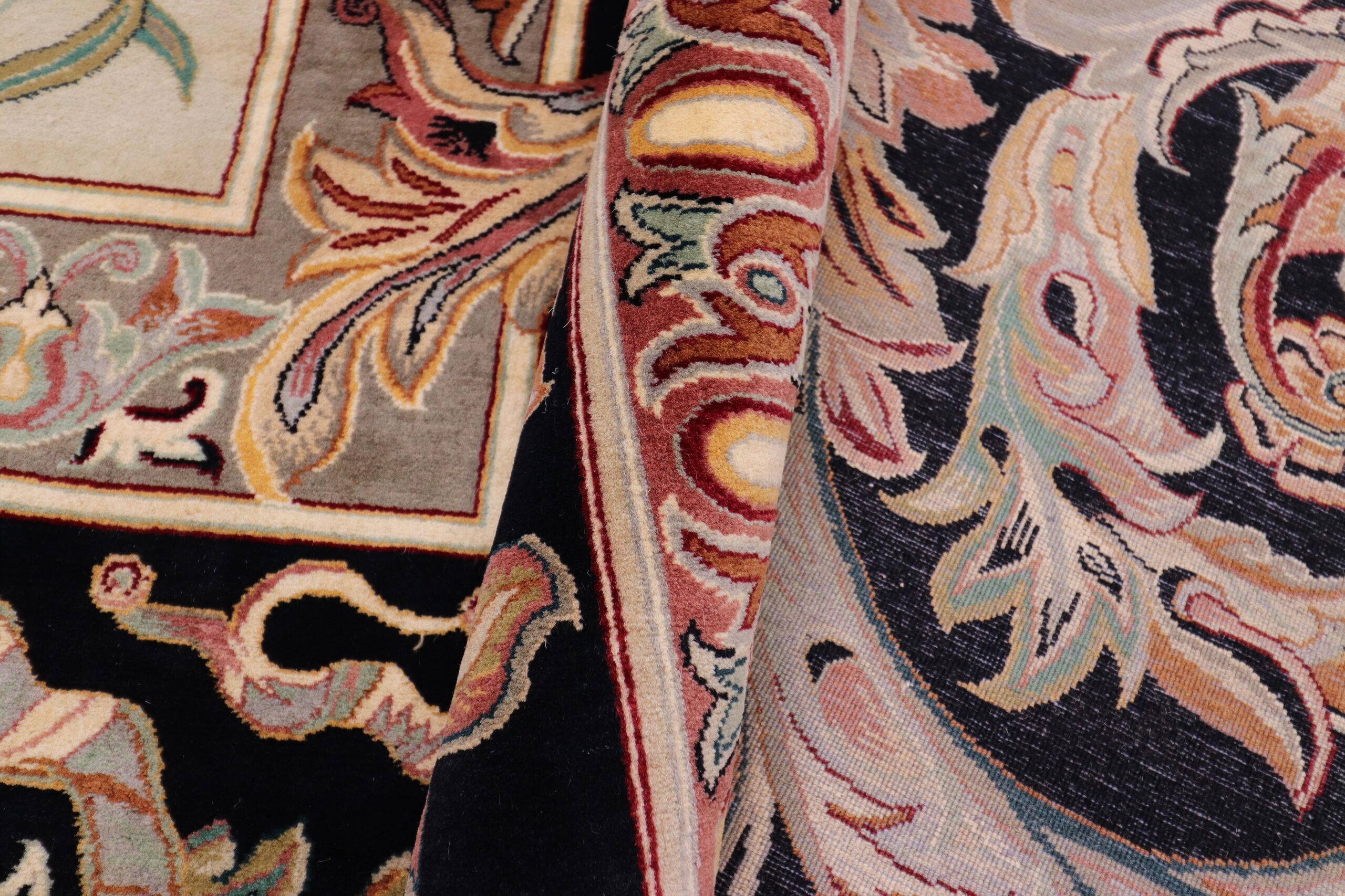Designed with mesmerizing intricacy and gorgeous color palette, this hand-knotted masterpiece demonstrates the beauty and electrifying thrill of Pak Persian art. These meticulously handcrafted Pak-Persian rug is made with pure wool and features breathtaking traditional and Transitional designs in bold lush color pallet. Known for their intricate designs these rugs are a reproduction of Persian rugs, made in Pakistan with unique Mughal designs. Made by master weavers using the same Persian texture, design and dying technique, we wanted to produce the most significant manifestation of the Persian art, life and culture. This rug is most famous for its exceptional quality, incredible designs, patterns and vibrant rich color. Pak-Persian rugs made with Persian weave with high knot counts, which enables the high intricacy and detail found in the patterns are also referred to as “State of art”, each color adds a rich beautiful detail in the artwork of this rug. The design, color and beautiful chromatic composition with a vibrant sheen with traditional and transitional designs, exude beauty, elegance and quality make this rug a masterpiece of its own.