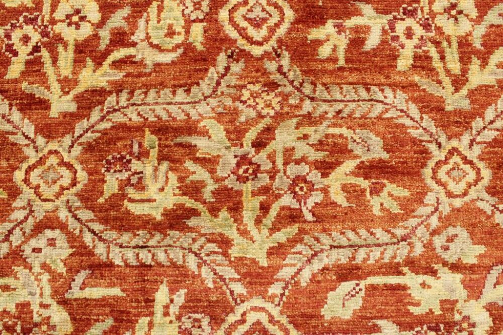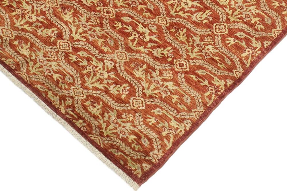 Designed with a mesmerizing intricate traditional motif this glorious hand knotted rug is a masterpiece that will fill any space with sophistication and grace. An exhilarating color pallet with an elaborate design, this masterpiece features luxurious hand spun wool with all vegetable dyes to add comfort and style to your décor. The design, color and beautiful chromatic composition with a sheen in traditional and transitional designs, exude beauty, elegance and quality make this rug a masterpiece of its own.