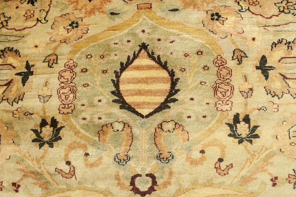 Designed with a mesmerizing intricate traditional motif this glorious hand knotted rug is a masterpiece that will fill any space with sophistication and grace. An exhilarating color pallet with an elaborate design, this masterpiece features luxurious hand spun wool with all vegetable dyes to add comfort and style to your décor. The design, color and beautiful chromatic composition with a sheen in traditional and transitional designs, exude beauty, elegance and quality make this rug a masterpiece of its own