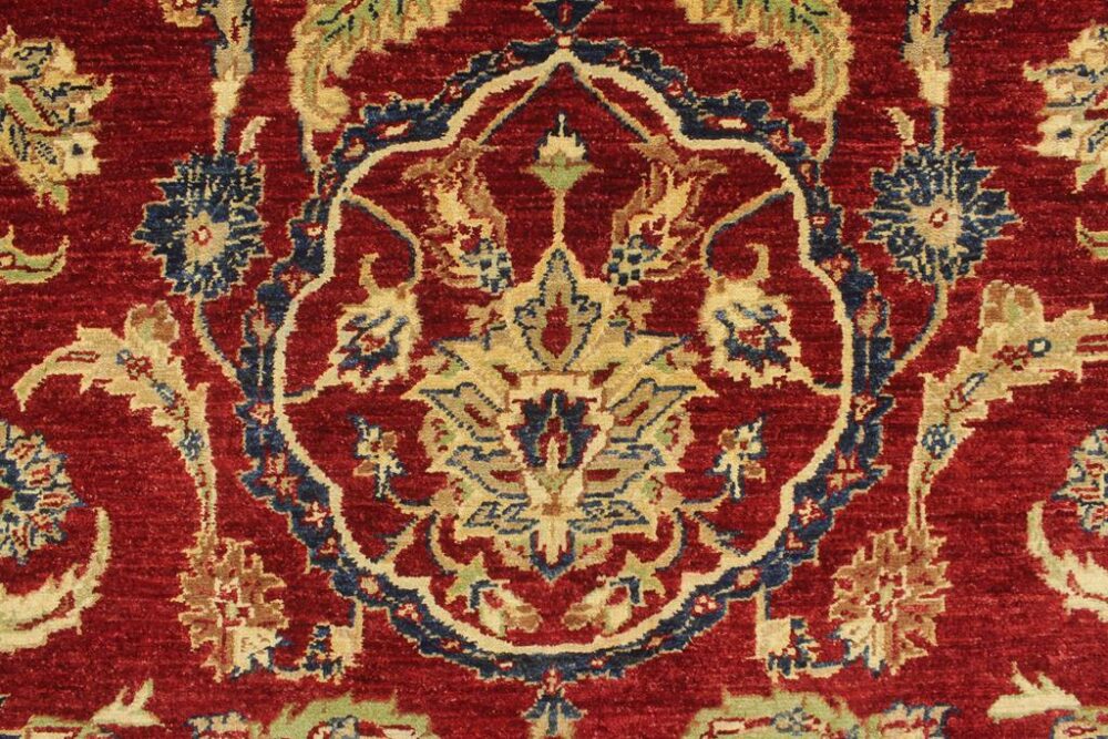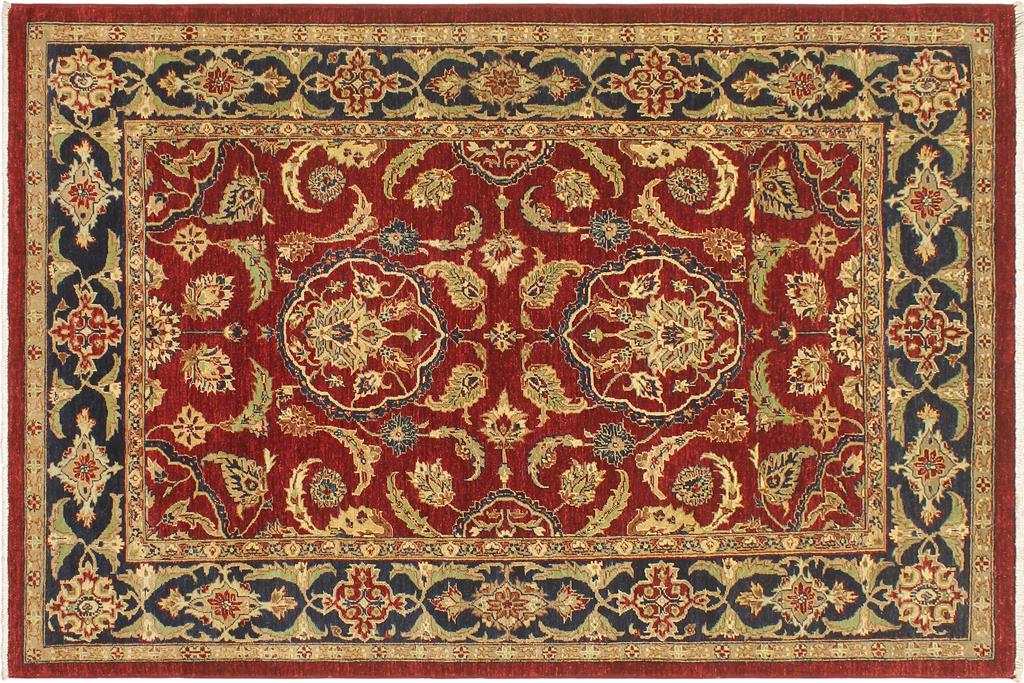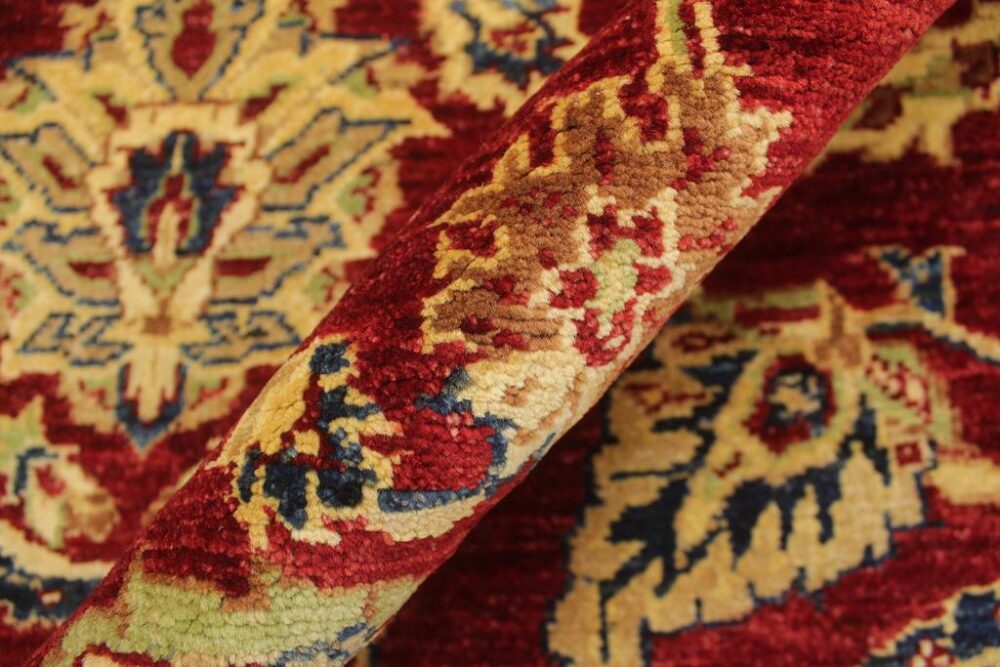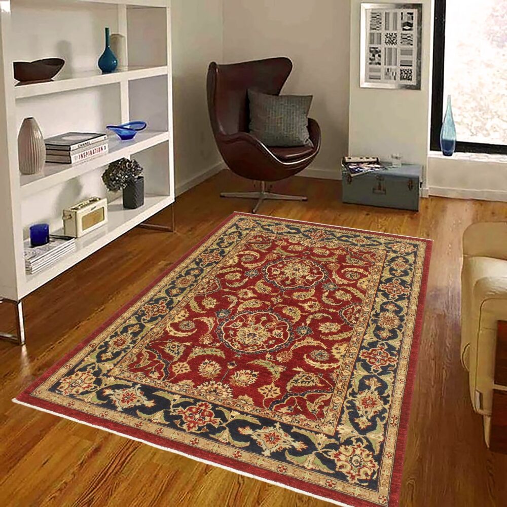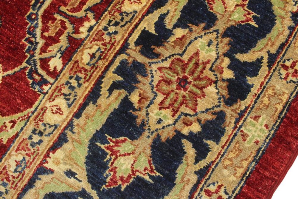 Designed with a mesmerizing intricate traditional motif this glorious hand knotted rug is a masterpiece that will fill any space with sophistication and grace. An exhilarating color pallet with an elaborate design, this masterpiece features luxurious hand spun wool with all vegetable dyes to add comfort and style to your décor. The design, color and beautiful chromatic composition with a sheen in traditional and transitional designs, exude beauty, elegance and quality make this rug a masterpiece of its own