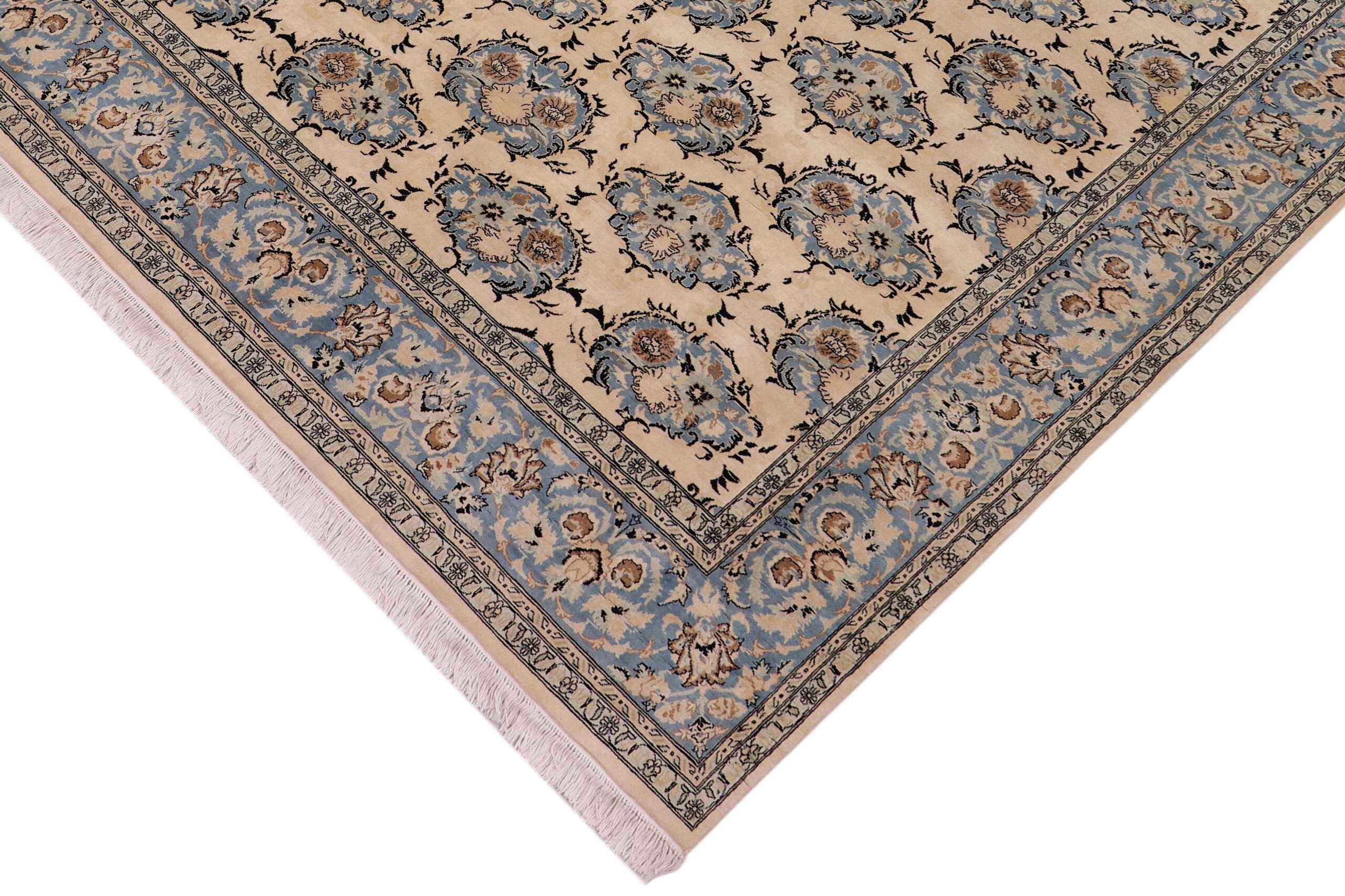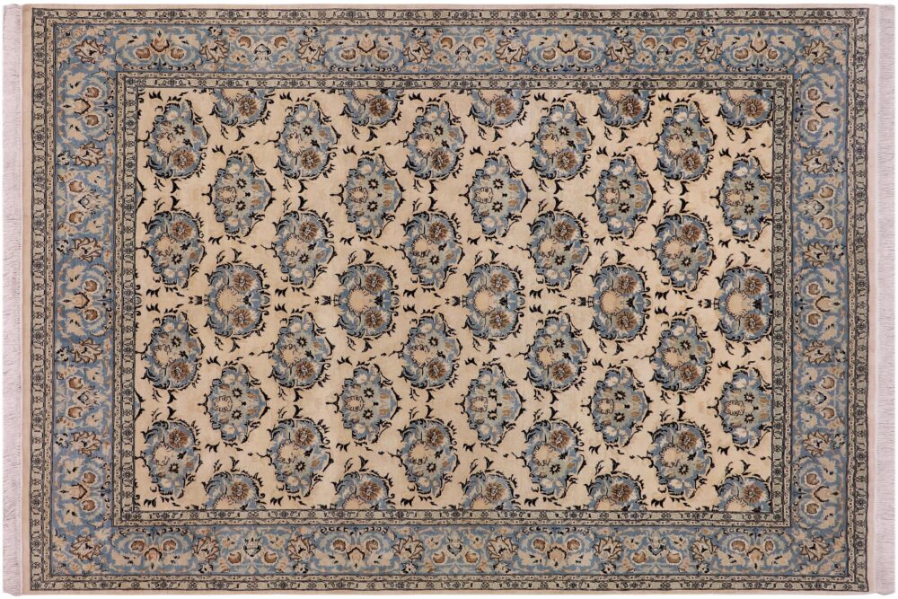 Designed with mesmerizing intricacy and gorgeous color palette, this hand-knotted masterpiece demonstrates the beauty and electrifying thrill of Pak Persian art. These meticulously handcrafted Pak-Persian rug is made with pure wool and features breathtaking traditional and Transitional designs in bold lush color pallet. Known for their intricate designs these rugs are a reproduction of Persian rugs, made in Pakistan with unique Mughal designs. Made by master weavers using the same Persian texture, design and dying technique, we wanted to produce the most significant manifestation of the Persian art, life and culture. This rug is most famous for its exceptional quality, incredible designs, patterns and vibrant rich color. Pak-Persian rugs made with Persian weave with high knot counts, which enables the high intricacy and detail found in the patterns are also referred to as “State of art”, each color adds a rich beautiful detail in the artwork of this rug. The design, color and beautiful chromatic composition with a vibrant sheen with traditional and transitional designs, exude beauty, elegance and quality make this rug a masterpiece of its own.