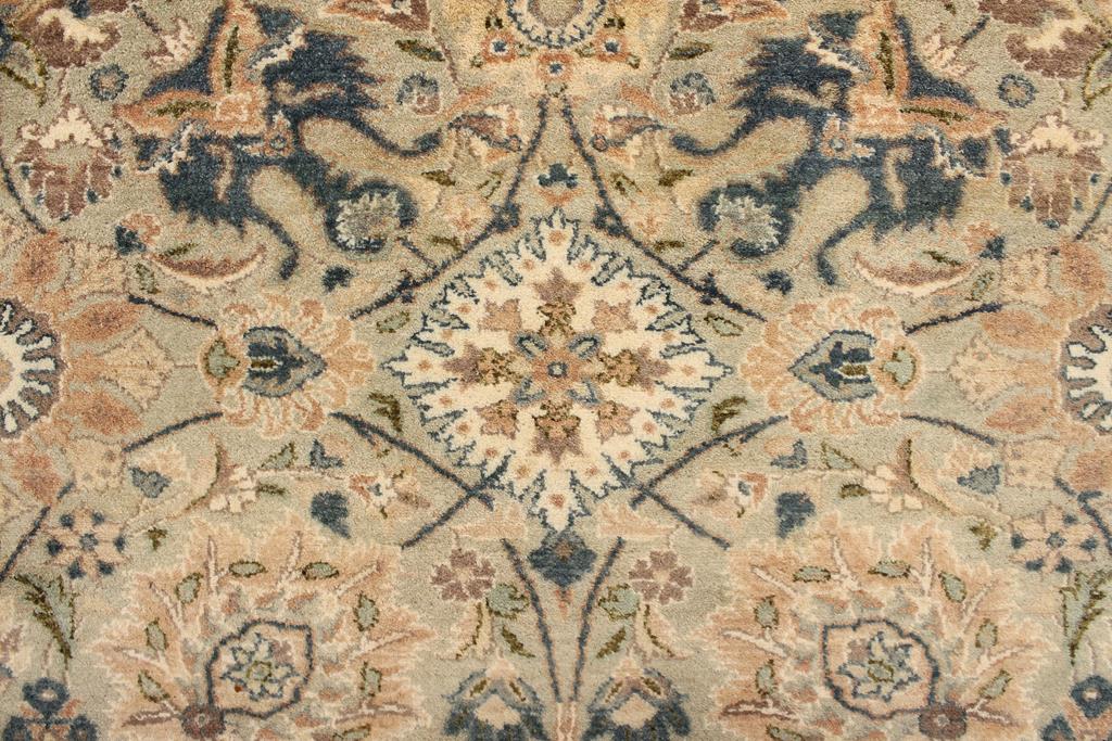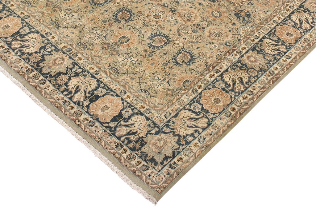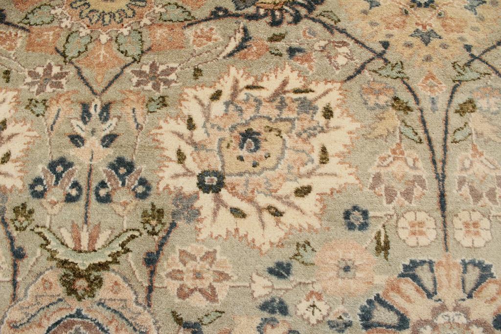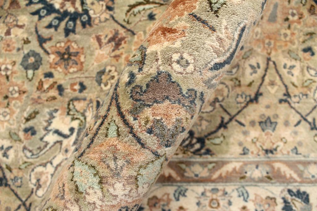 Designed with mesmerizing intricacy and gorgeous color palette, this hand-knotted masterpiece demonstrates the beauty and electrifying thrill of Pak Persian art. Made with all handspun wool and vegetable dyes with KPSI of 250-300, this meticulously handcrafted Pak-Persian rug is made with pure wool and features breathtaking traditional and transitional designs in the beautiful lush color pallet. Known for their intricate designs these rugs are a reproduction of Persian rugs, made in Pakistan with unique Mughal designs. Made by master weavers using the same Persian texture, design, and vegetable dying technique, we wanted to create the most significant manifestation of Persian art, life, and culture. This rug is most famous for its exceptional quality, incredible designs, patterns, and vibrant rich color. Pak-Persian rugs made with Persian weave with high knot counts, which enables the high intricacy and detail found in the patterns are also referred to as State of art, each color adds a rich beautiful detail in the artwork of this rug. The design, color and beautiful chromatic composition with a vibrant sheen with traditional and transitional designs exude beauty, elegance, and quality make this rug a masterpiece of its own.