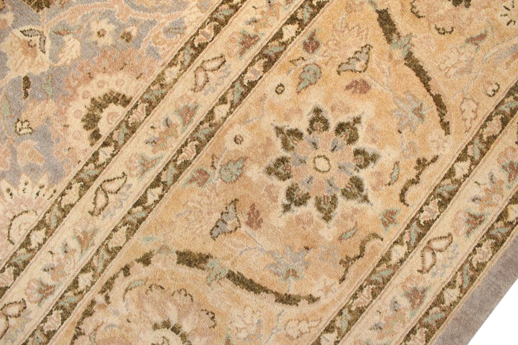 Designed with mesmerizing intricacy and gorgeous color palette, this hand-knotted masterpiece demonstrates the beauty and electrifying thrill of Pak Persian art. Made with all handspun wool and vegetable dyes with KPSI of 250-300, this meticulously handcrafted Pak-Persian rug is made with pure wool and features breathtaking traditional and transitional designs in the beautiful lush color pallet. Known for their intricate designs these rugs are a reproduction of Persian rugs, made in Pakistan with unique Mughal designs. Made by master weavers using the same Persian texture, design, and vegetable dying technique, we wanted to create the most significant manifestation of Persian art, life, and culture. This rug is most famous for its exceptional quality, incredible designs, patterns, and vibrant rich color. Pak-Persian rugs made with Persian weave with high knot counts, which enables the high intricacy and detail found in the patterns are also referred to as State of art, each color adds a rich beautiful detail in the artwork of this rug. The design, color and beautiful chromatic composition with a vibrant sheen with traditional and transitional designs exude beauty, elegance, and quality make this rug a masterpiece of its own.