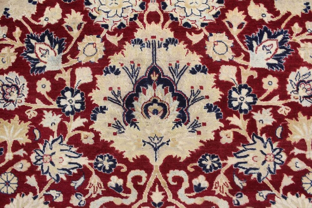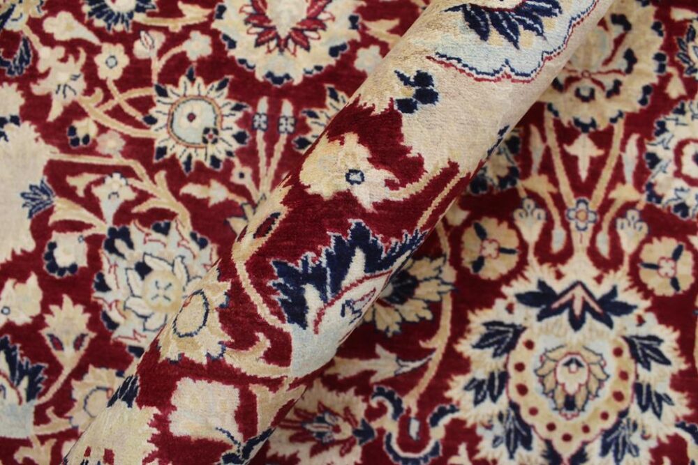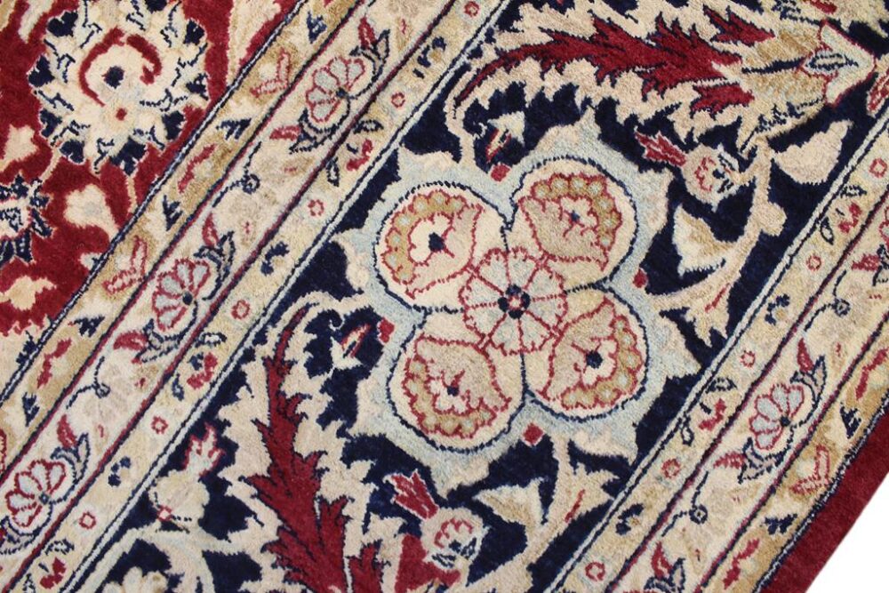 Designed with mesmerizing intricacy and gorgeous color palette, this hand-knotted masterpiece demonstrates the beauty and electrifying thrill of Pak Persian art. Made with all handspun wool and vegetable dyes with KPSI of 250-300, this meticulously handcrafted Pak-Persian rug is made with pure wool and features breathtaking traditional and transitional designs in the beautiful lush color pallet. Known for their intricate designs these rugs are a reproduction of Persian rugs, made in Pakistan with unique Mughal designs. Made by master weavers using the same Persian texture, design, and vegetable dying technique, we wanted to create the most significant manifestation of Persian art, life, and culture. This rug is most famous for its exceptional quality, incredible designs, patterns, and vibrant rich color. Pak-Persian rugs made with Persian weave with high knot counts, which enables the high intricacy and detail found in the patterns are also referred to as State of art, each color adds a rich beautiful detail in the artwork of this rug. The design, color and beautiful chromatic composition with a vibrant sheen with traditional and transitional designs exude beauty, elegance, and quality make this rug a masterpiece of its own.