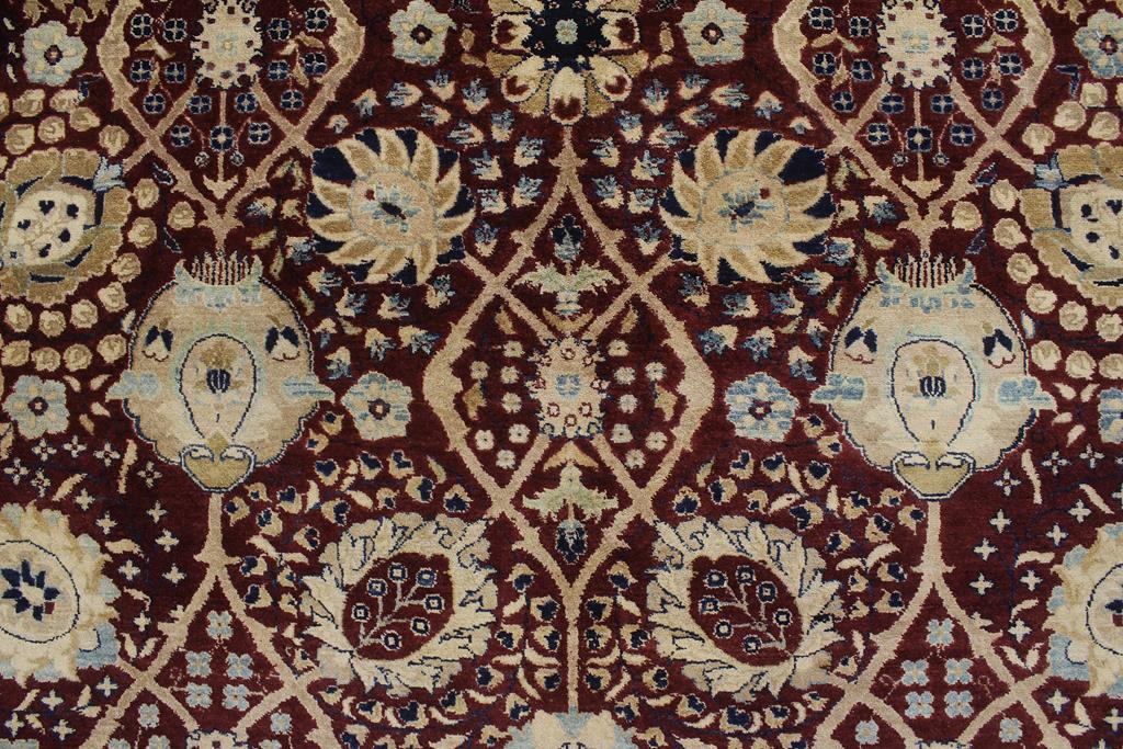 Designed with mesmerizing intricacy and gorgeous color palette, this hand-knotted masterpiece demonstrates the beauty and electrifying thrill of Pak Persian art. Made with all handspun wool and vegetable dyes with KPSI of 250-300, this meticulously handcrafted Pak-Persian rug is made with pure wool and features breathtaking traditional and transitional designs in the beautiful lush color pallet. Known for their intricate designs these rugs are a reproduction of Persian rugs, made in Pakistan with unique Mughal designs. Made by master weavers using the same Persian texture, design, and vegetable dying technique, we wanted to create the most significant manifestation of Persian art, life, and culture. This rug is most famous for its exceptional quality, incredible designs, patterns, and vibrant rich color. Pak-Persian rugs made with Persian weave with high knot counts, which enables the high intricacy and detail found in the patterns are also referred to as State of art, each color adds a rich beautiful detail in the artwork of this rug. The design, color and beautiful chromatic composition with a vibrant sheen with traditional and transitional designs exude beauty, elegance, and quality make this rug a masterpiece of its own.