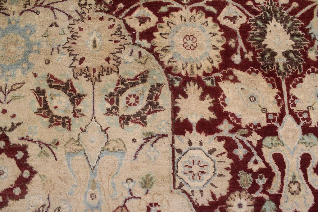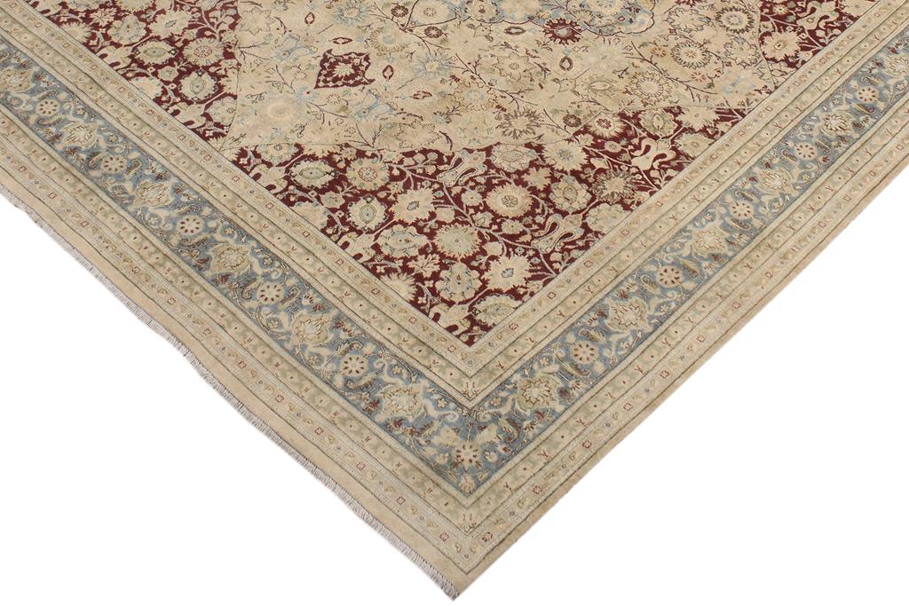 Designed with mesmerizing intricacy and gorgeous color palette, this hand-knotted masterpiece demonstrates the beauty and electrifying thrill of Pak Persian art. Made with all handspun wool and vegetable dyes with KPSI of 250-300, this meticulously handcrafted Pak-Persian rug is made with pure wool and features breathtaking traditional and transitional designs in the beautiful lush color pallet. Known for their intricate designs these rugs are a reproduction of Persian rugs, made in Pakistan with unique Mughal designs. Made by master weavers using the same Persian texture, design, and vegetable dying technique, we wanted to create the most significant manifestation of Persian art, life, and culture. This rug is most famous for its exceptional quality, incredible designs, patterns, and vibrant rich color. Pak-Persian rugs made with Persian weave with high knot counts, which enables the high intricacy and detail found in the patterns are also referred to as State of art, each color adds a rich beautiful detail in the artwork of this rug. The design, color and beautiful chromatic composition with a vibrant sheen with traditional and transitional designs exude beauty, elegance, and quality make this rug a masterpiece of its own.