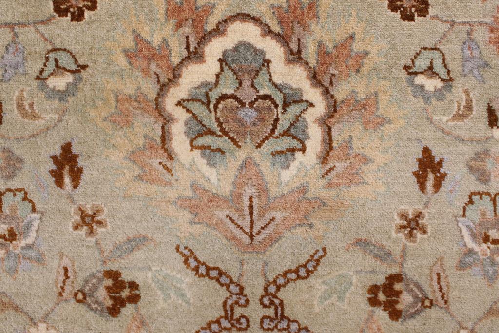 Designed with mesmerizing intricacy and gorgeous color palette, this hand-knotted masterpiece demonstrates the beauty and electrifying thrill of Pak Persian art. Made with all handspun wool and vegetable dyes with KPSI of 250-300, this meticulously handcrafted Pak-Persian rug is made with pure wool and features breathtaking traditional and transitional designs in the beautiful lush color pallet. Known for their intricate designs these rugs are a reproduction of Persian rugs, made in Pakistan with unique Mughal designs. Made by master weavers using the same Persian texture, design, and vegetable dying technique, we wanted to create the most significant manifestation of Persian art, life, and culture. This rug is most famous for its exceptional quality, incredible designs, patterns, and vibrant rich color. Pak-Persian rugs made with Persian weave with high knot counts, which enables the high intricacy and detail found in the patterns are also referred to as State of art, each color adds a rich beautiful detail in the artwork of this rug. The design, color and beautiful chromatic composition with a vibrant sheen with traditional and transitional designs exude beauty, elegance, and quality make this rug a masterpiece of its own.