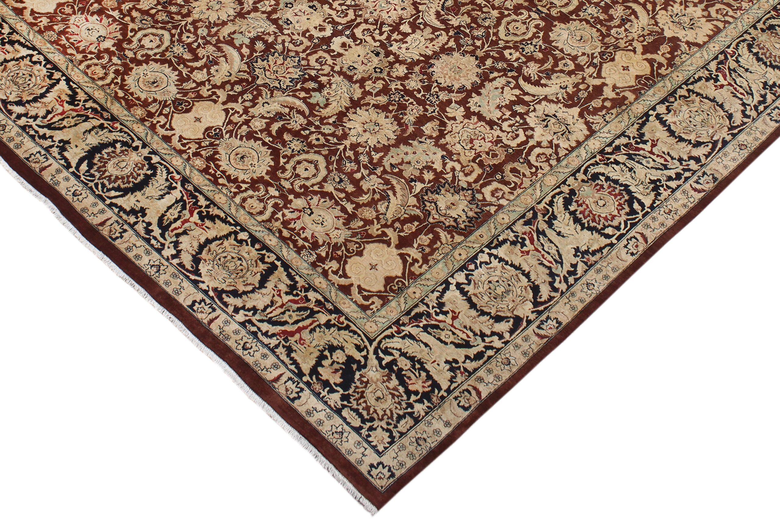 Designed with mesmerizing intricacy and gorgeous color palette, this hand-knotted masterpiece demonstrates the beauty and electrifying thrill of Pak Persian art. Made with all handspun wool and vegetable dyes with KPSI of 250-300, this meticulously handcrafted Pak-Persian rug is made with pure wool and features breathtaking traditional and transitional designs in the beautiful lush color pallet. Known for their intricate designs these rugs are a reproduction of Persian rugs, made in Pakistan with unique Mughal designs. Made by master weavers using the same Persian texture, design, and vegetable dying technique, we wanted to create the most significant manifestation of Persian art, life, and culture. This rug is most famous for its exceptional quality, incredible designs, patterns, and vibrant rich color. Pak-Persian rugs made with Persian weave with high knot counts, which enables the high intricacy and detail found in the patterns are also referred to as State of art, each color adds a rich beautiful detail in the artwork of this rug. The design, color and beautiful chromatic composition with a vibrant sheen with traditional and transitional designs exude beauty, elegance, and quality make this rug a masterpiece of its own.