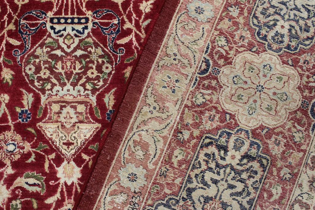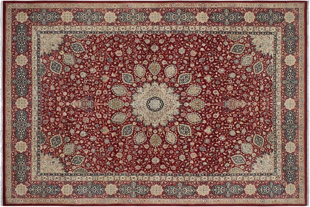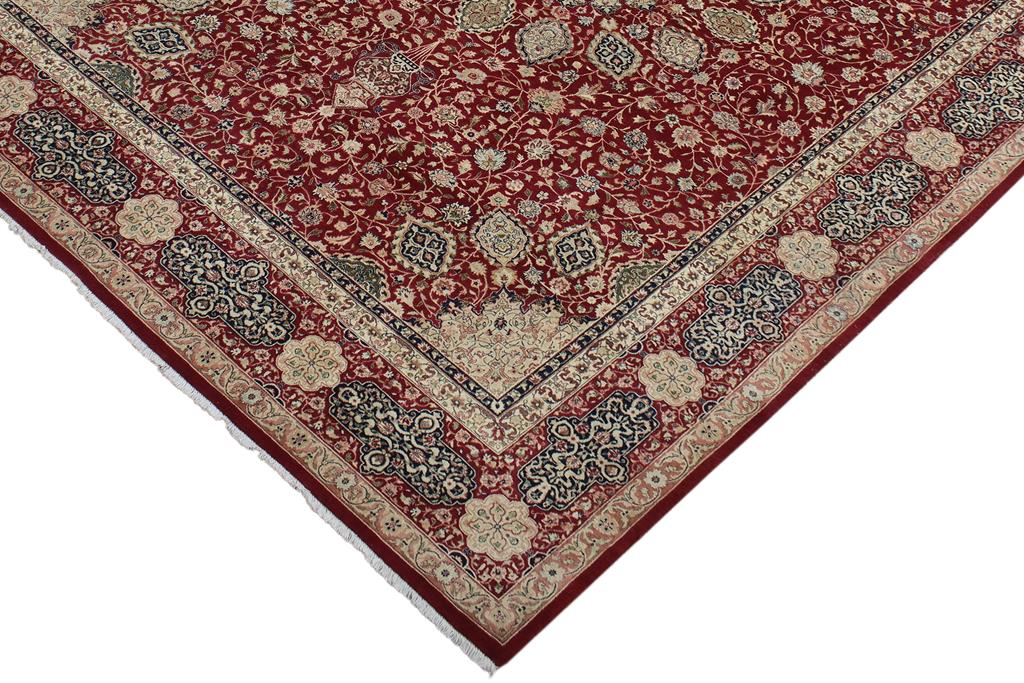 Designed with mesmerizing intricacy and gorgeous color palette, this hand-knotted masterpiece demonstrates the beauty and electrifying thrill of Pak Persian art. Made with all handspun wool and vegetable dyes with KPSI of 250-300, this meticulously handcrafted Pak-Persian rug is made with pure wool and features breathtaking traditional and transitional designs in the beautiful lush color pallet. Known for their intricate designs these rugs are a reproduction of Persian rugs, made in Pakistan with unique Mughal designs. Made by master weavers using the same Persian texture, design, and vegetable dying technique, we wanted to create the most significant manifestation of Persian art, life, and culture. This rug is most famous for its exceptional quality, incredible designs, patterns, and vibrant rich color. Pak-Persian rugs made with Persian weave with high knot counts, which enables the high intricacy and detail found in the patterns are also referred to as State of art, each color adds a rich beautiful detail in the artwork of this rug. The design, color and beautiful chromatic composition with a vibrant sheen with traditional and transitional designs exude beauty, elegance, and quality make this rug a masterpiece of its own.