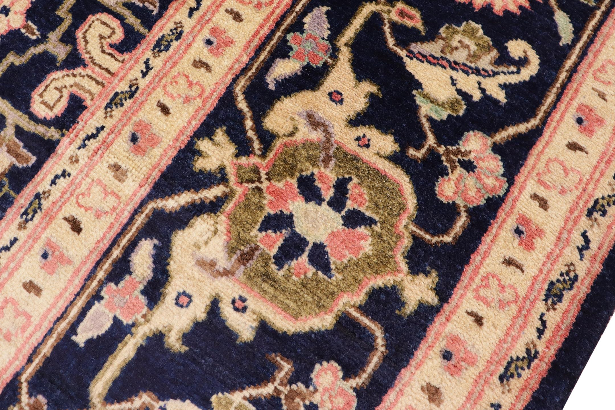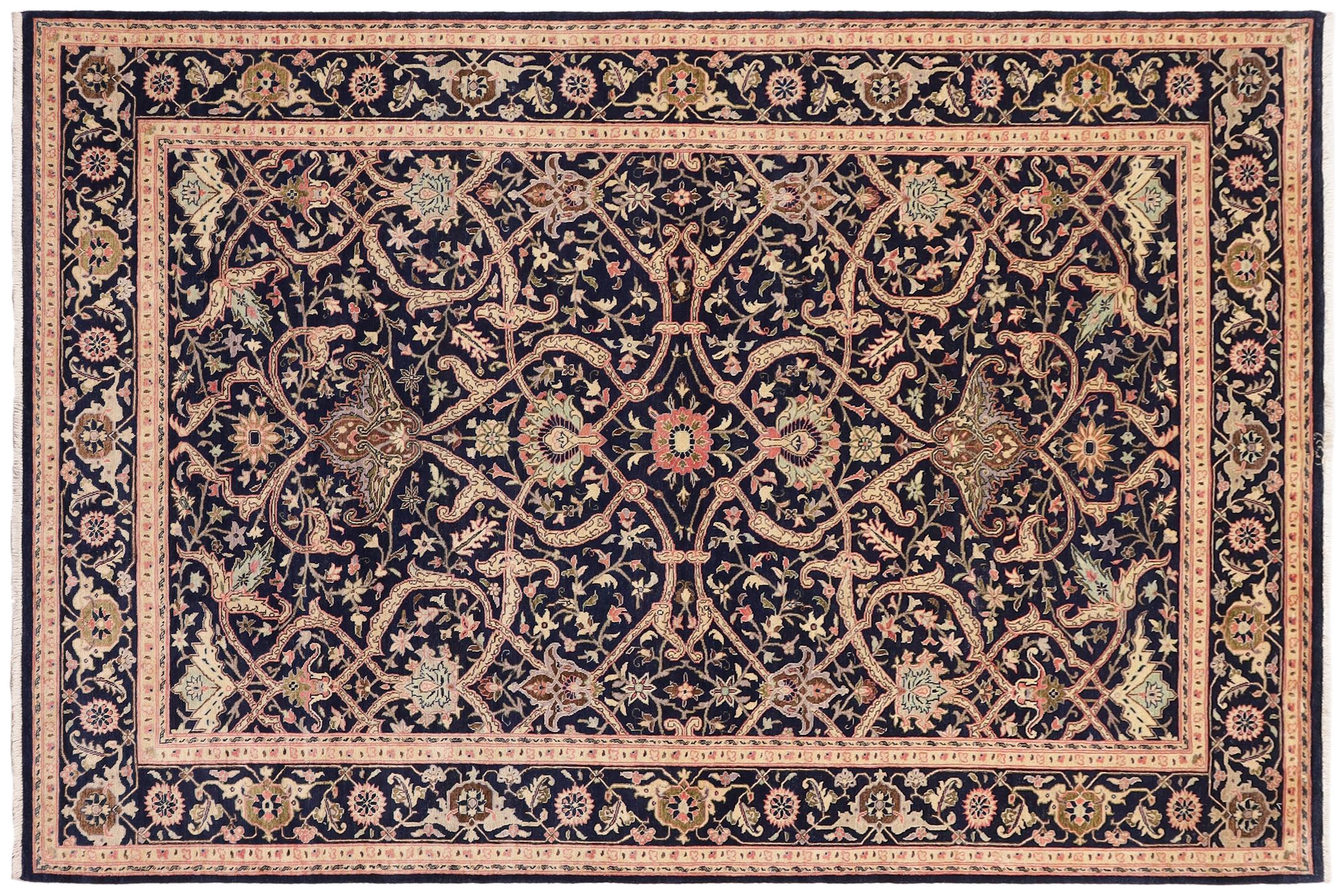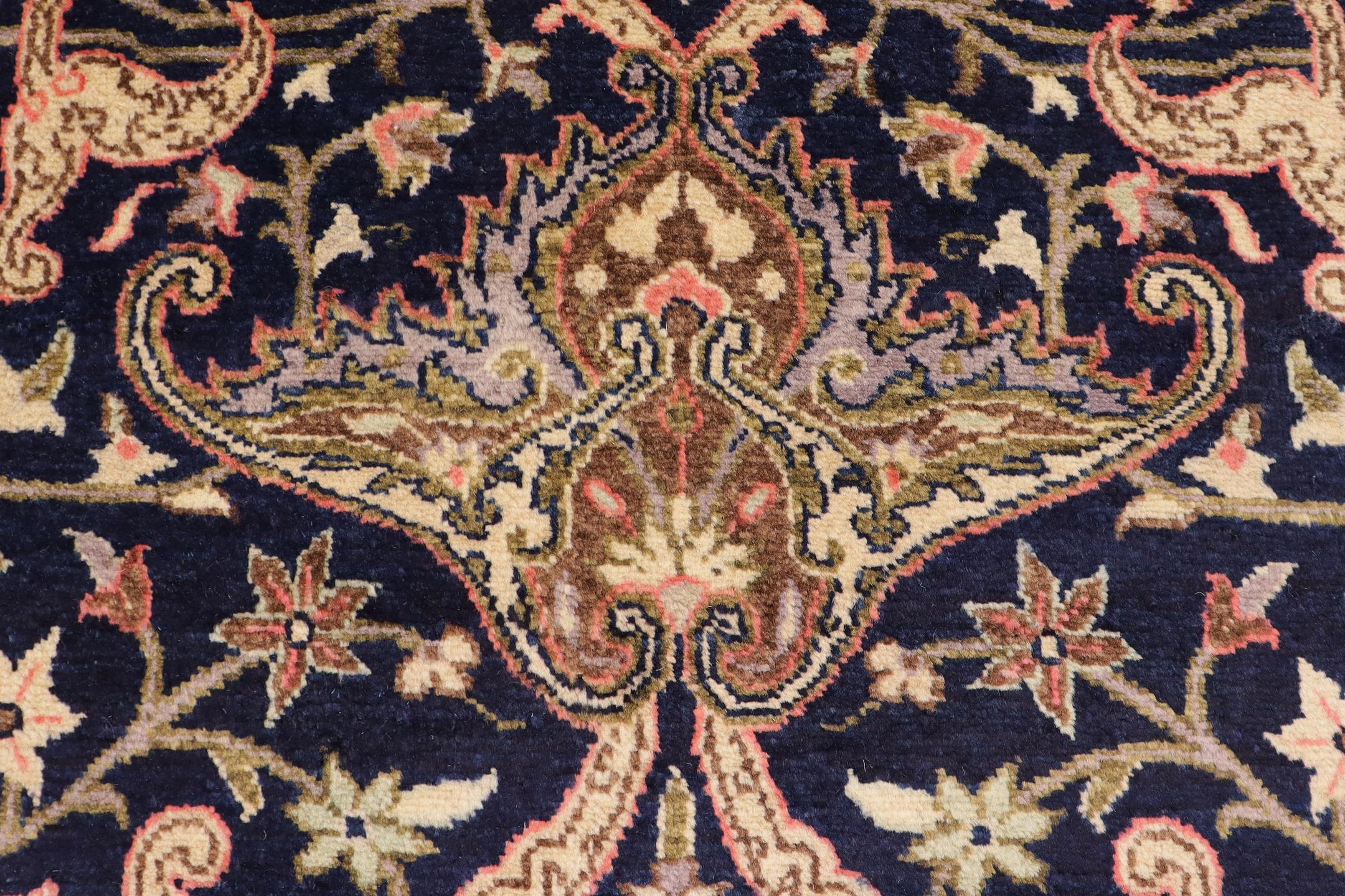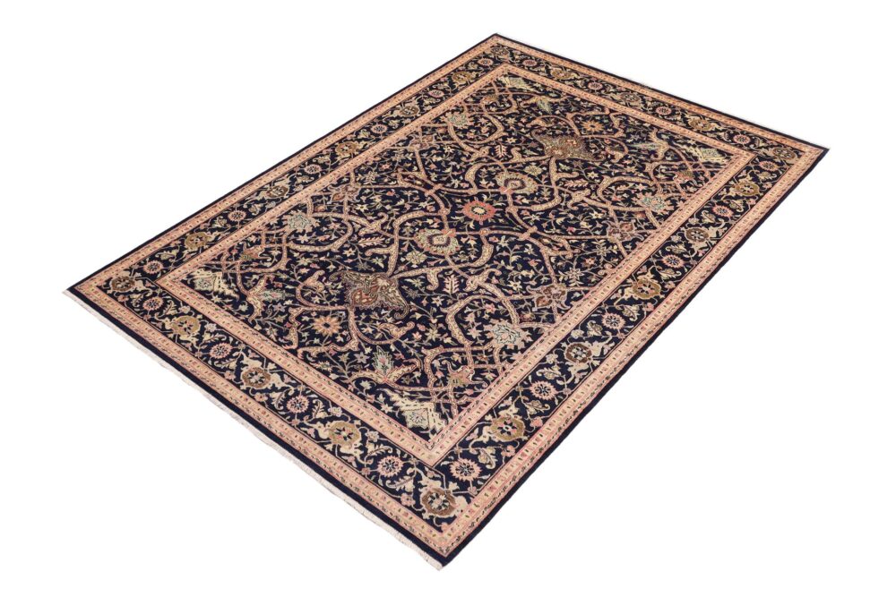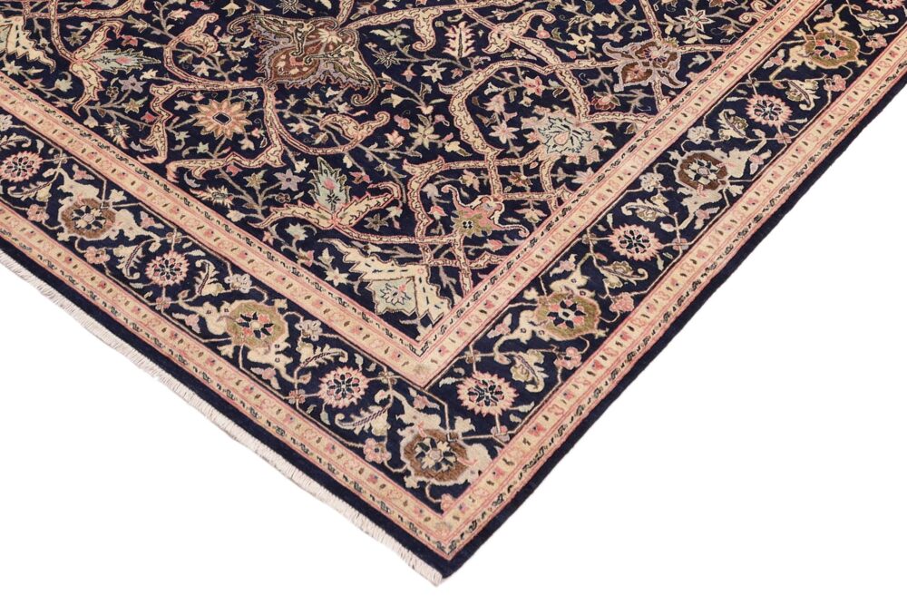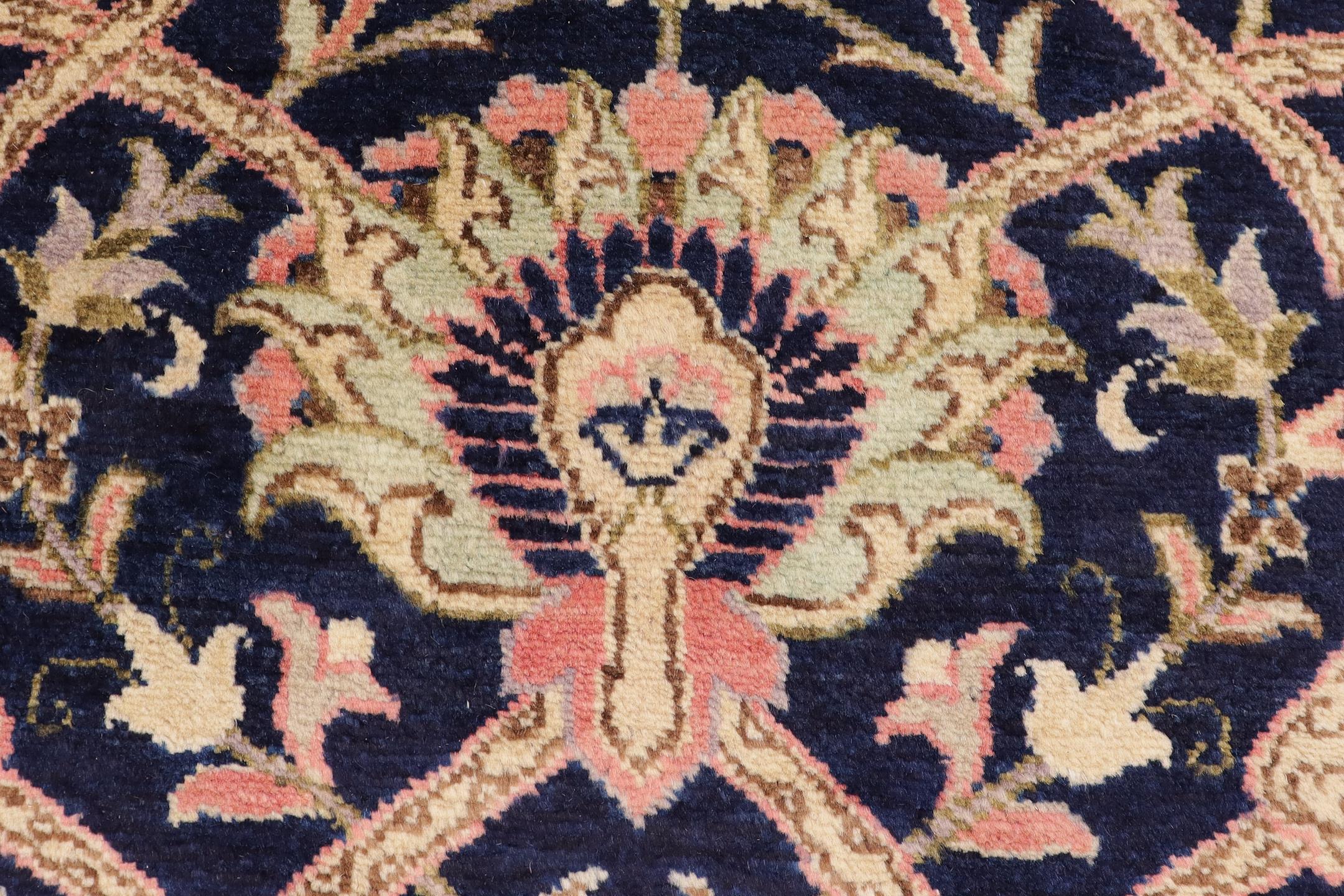 Designed with mesmerizing intricacy and gorgeous color palette, this hand-knotted masterpiece demonstrates the beauty and electrifying thrill of Pak Persian art. Made with all handspun wool and vegetable dyes with KPSI of 250-300, this meticulously handcrafted Pak-Persian rug is made with pure wool and features breathtaking traditional and transitional designs in the beautiful lush color pallet. Known for their intricate designs these rugs are a reproduction of Persian rugs, made in Pakistan with unique Mughal designs. Made by master weavers using the same Persian texture, design, and vegetable dying technique, we wanted to create the most significant manifestation of Persian art, life, and culture. This rug is most famous for its exceptional quality, incredible designs, patterns, and vibrant rich color. Pak-Persian rugs made with Persian weave with high knot counts, which enables the high intricacy and detail found in the patterns are also referred to as State of art, each color adds a rich beautiful detail in the artwork of this rug. The design, color and beautiful chromatic composition with a vibrant sheen with traditional and transitional designs exude beauty, elegance, and quality make this rug a masterpiece of its own.