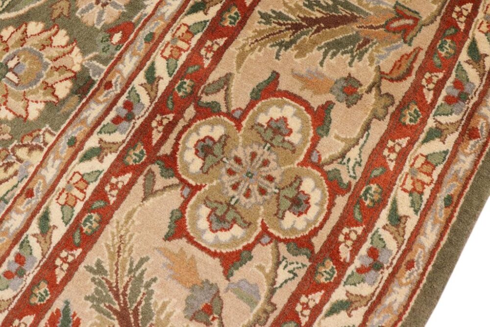 Designed with mesmerizing intricacy and gorgeous color palette, this hand-knotted masterpiece demonstrates the beauty and electrifying thrill of Pak Persian art. These meticulously handcrafted Pak-Persian rug is made with pure wool and features breathtaking traditional and transitional designs in bold lush color pallet. Known for their intricate designs these rugs are a reproduction of Persian rugs, made in Pakistan with unique Mughal designs. Made by master weavers using the same Persian texture, design and dying technique, we wanted to produce the most significant manifestation of the Persian art, life and culture. This rug is most famous for its exceptional quality, incredible designs, patterns and vibrant rich color. Pak-Persian rugs made with Persian weave with high knot counts, which enables the high intricacy and detail found in the patterns are also referred to as “State of art”, each color adds a rich beautiful detail in the artwork of this rug. The design, color and beautiful chromatic composition with a vibrant sheen with traditional and transitional designs, exude beauty, elegance and quality make this rug a masterpiece of its own.