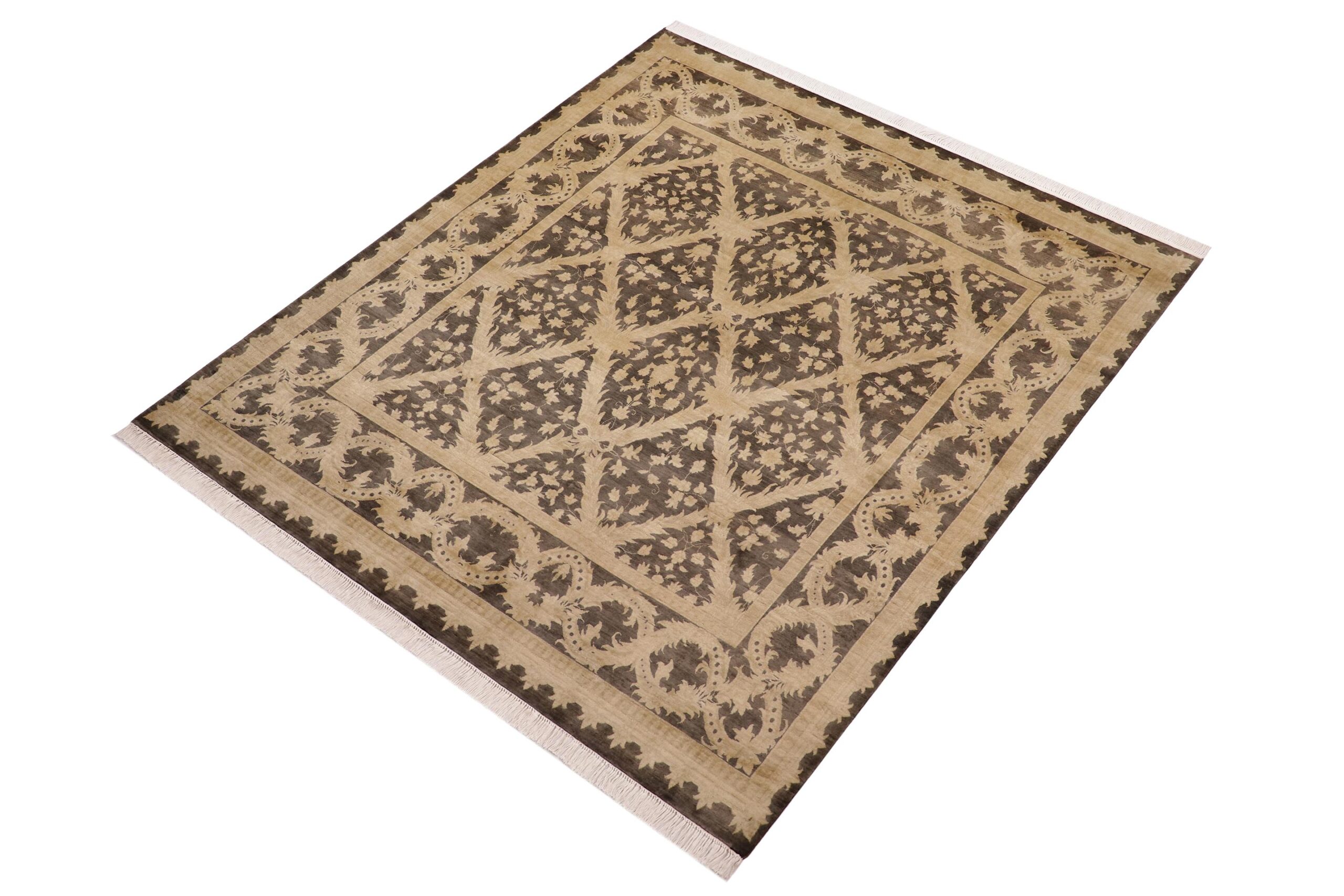 Designed with mesmerizing intricacy and gorgeous color palette, this hand-knotted masterpiece demonstrates the beauty and electrifying thrill of Pak Persian art. These meticulously handcrafted Pak-Persian rug is made with pure wool and features breathtaking traditional and Transitional designs in bold lush color pallet. Known for their intricate designs these rugs are a reproduction of Persian rugs, made in Pakistan with unique Mughal designs. Made by master weavers using the same Persian texture, design and dying technique, we wanted to produce the most significant manifestation of the Persian art, life and culture. This rug is most famous for its exceptional quality, incredible designs, patterns and vibrant rich color. Pak-Persian rugs made with Persian weave with high knot counts, which enables the high intricacy and detail found in the patterns are also referred to as “State of art”, each color adds a rich beautiful detail in the artwork of this rug. The design, color and beautiful chromatic composition with a vibrant sheen with traditional and TRANSITIONALl designs, exude beauty, elegance and quality make this rug a masterpiece of its own.