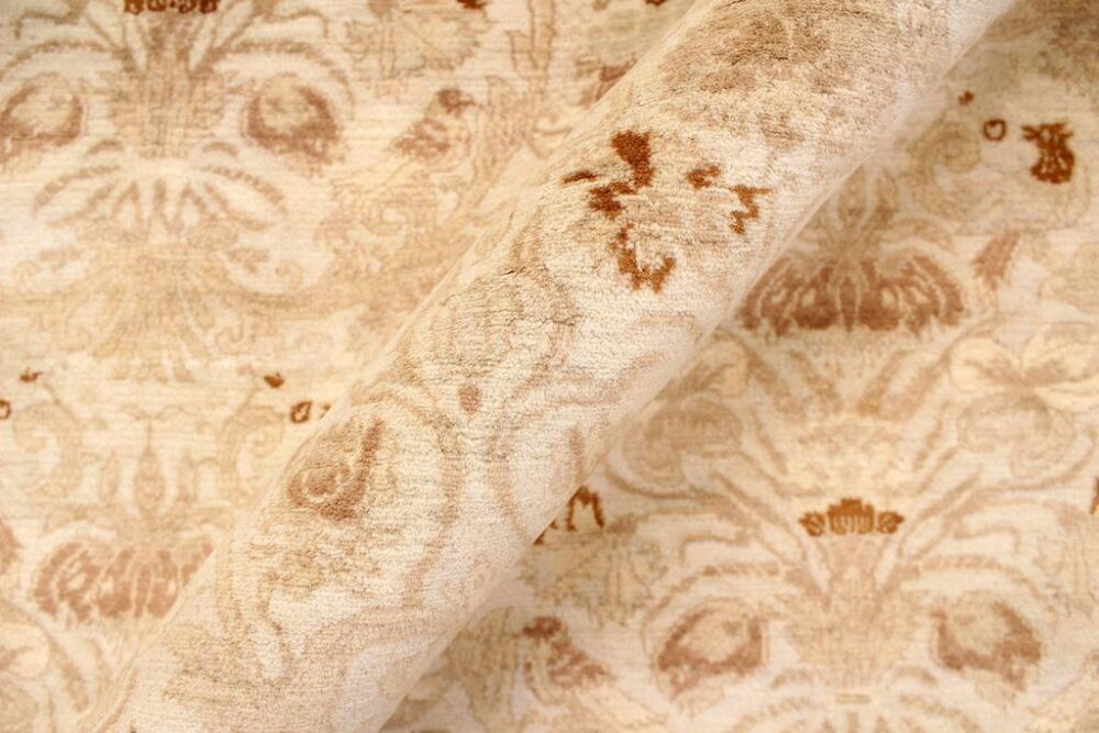 Designed with mesmerizing intricacy and gorgeous color palette, this hand-knotted masterpiece demonstrates the beauty and electrifying thrill of Pak Persian art. These meticulously handcrafted Pak-Persian rug is made with pure wool and features breathtaking traditional and Transitional designs in bold lush color pallet. Known for their intricate designs these rugs are a reproduction of Persian rugs, made in Pakistan with unique Mughal designs. Made by master weavers using the same Persian texture, design and dying technique, we wanted to produce the most significant manifestation of the Persian art, life and culture. This rug is most famous for its exceptional quality, incredible designs, patterns and vibrant rich color. Pak-Persian rugs made with Persian weave with high knot counts, which enables the high intricacy and detail found in the patterns are also referred to as State of art, each color adds a rich beautiful detail in the artwork of this rug. The design, color and beautiful chromatic composition with a vibrant sheen with traditional and transitional designs, exude beauty, elegance and quality make this rug a masterpiece of its own.