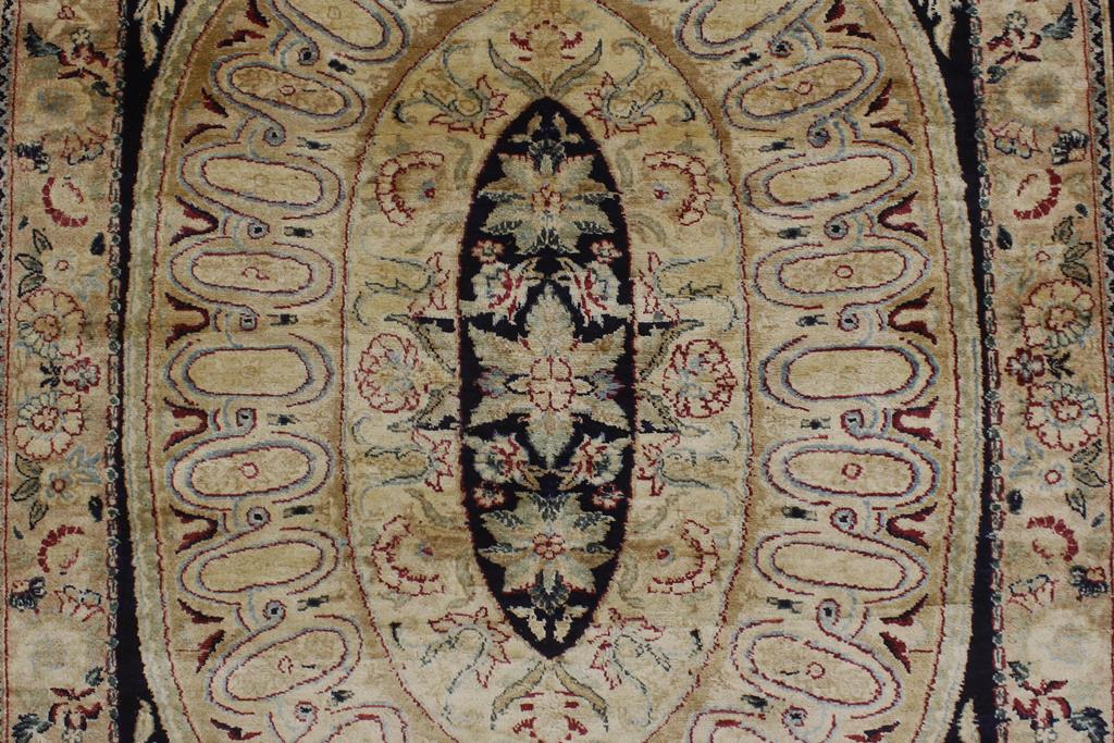 Designed with a mesmerizing intricate traditional motif this glorious hand knotted rug is a masterpiece that will fill any space with sophistication and grace. An exhilarating color pallet with an elaborate design, this masterpiece features luxurious hand spun wool with all Vegetable dyes to add comfort and style to your décor. The design, color and beautiful chromatic composition with sheen in traditional and transitional designs, exude beauty, elegance and quality make this rug a masterpiece of its own.