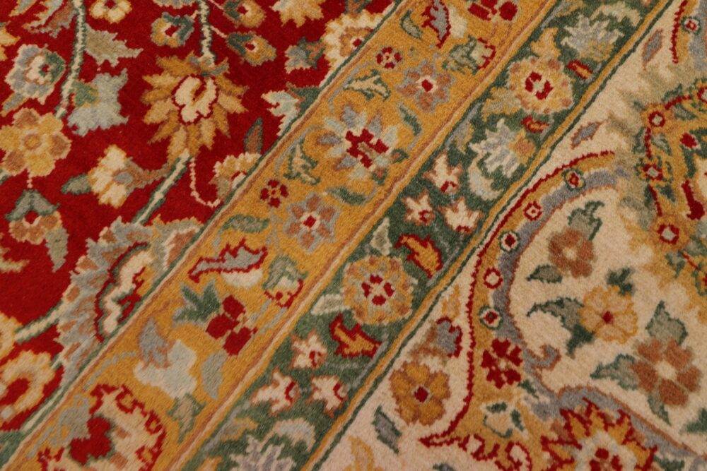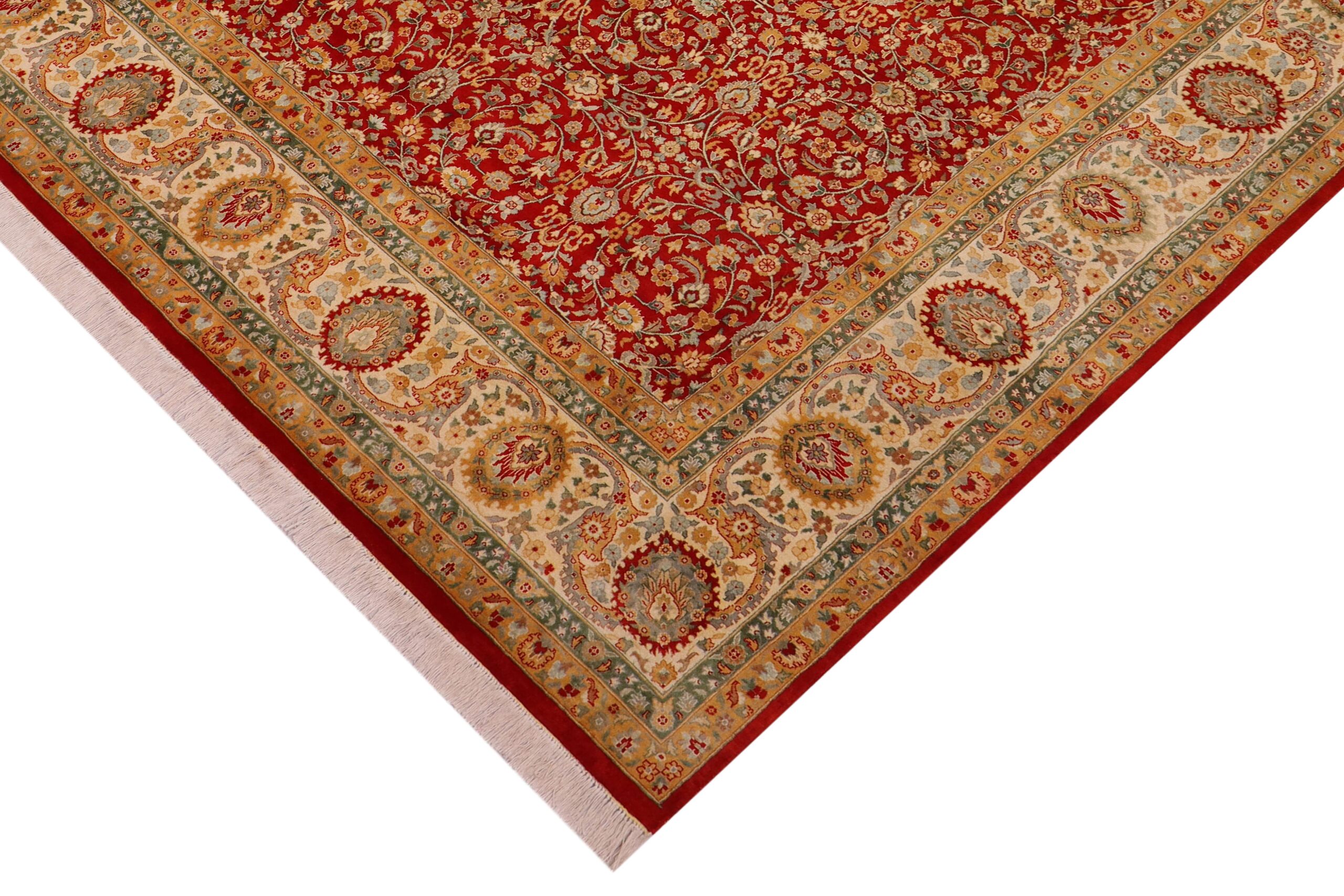 Designed with mesmerizing intricacy and gorgeous color palette, this hand-knotted masterpiece demonstrates the beauty and electrifying thrill of Pak Persian art. These meticulously handcrafted Pak-Persian rug is made with pure wool and features breathtaking traditional and Transitional designs in bold lush color pallet. Known for their intricate designs these rugs are a reproduction of Persian rugs, made in Pakistan with unique Mughal designs. Made by master weavers using the same Persian texture, design and dying technique, we wanted to produce the most significant manifestation of the Persian art, life and culture. This rug is most famous for its exceptional quality, incredible designs, patterns and vibrant rich color. Pak-Persian rugs made with Persian weave with high knot counts, which enables the high intricacy and detail found in the patterns are also referred to as “State of art”, each color adds a rich beautiful detail in the artwork of this rug. The design, color and beautiful chromatic composition with a vibrant sheen with traditional and transitional designs, exude beauty, elegance and quality make this rug a masterpiece of its own.