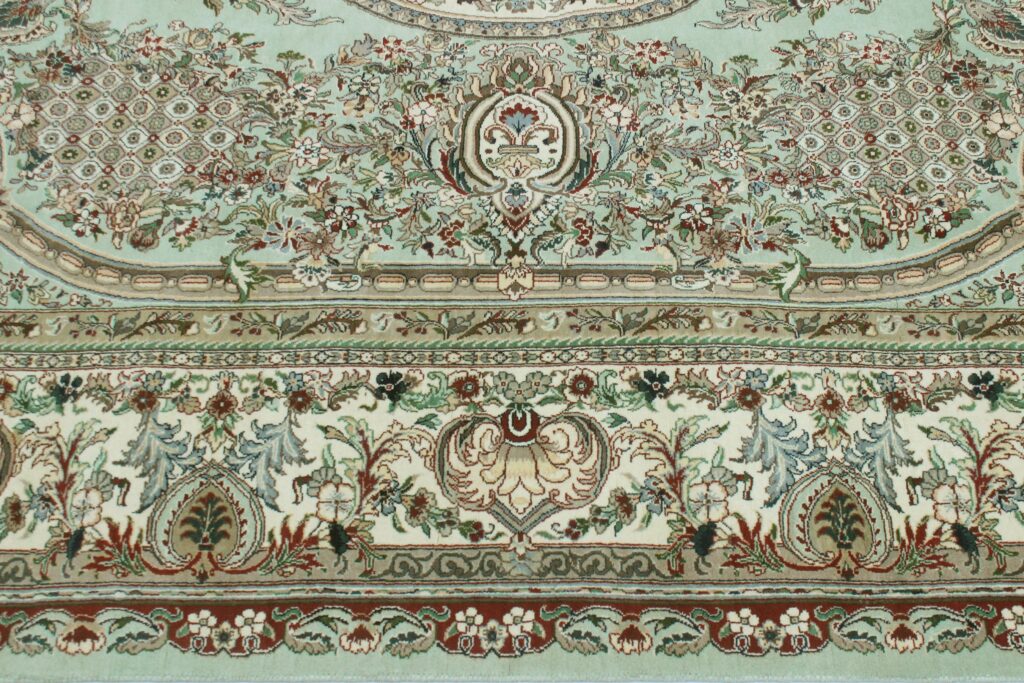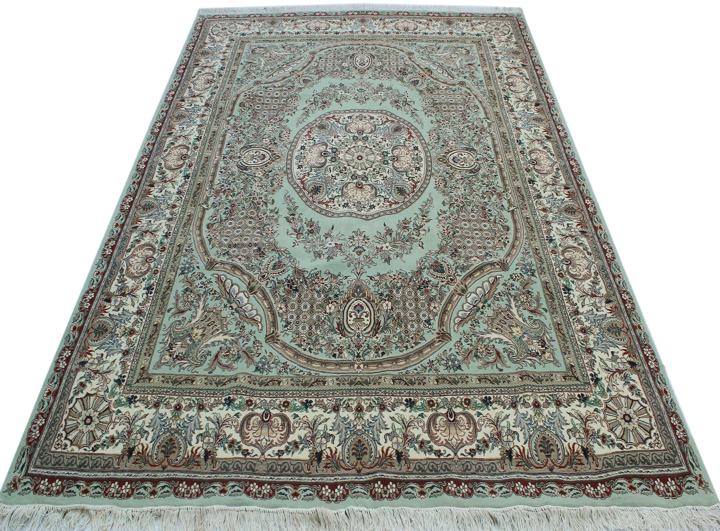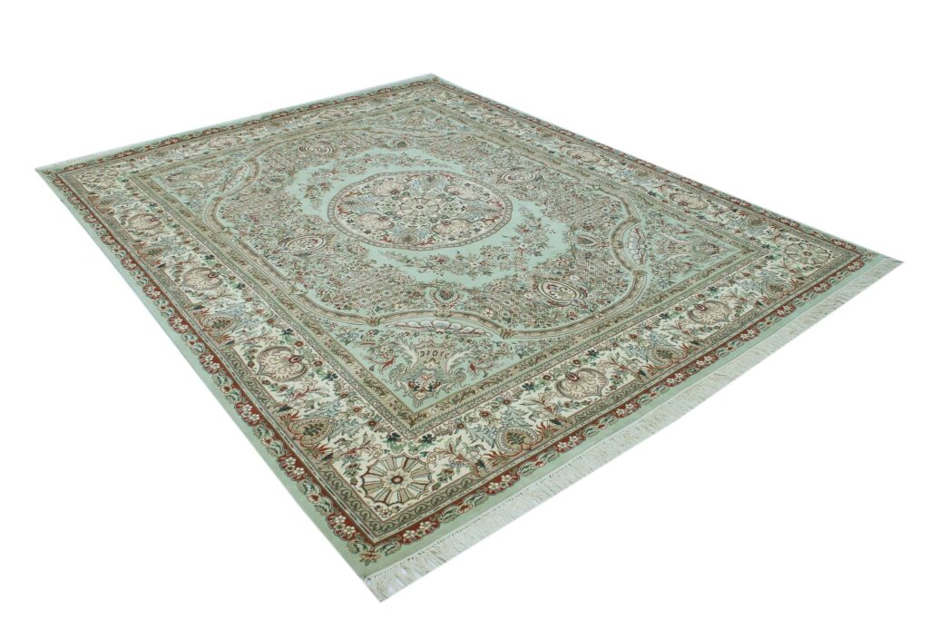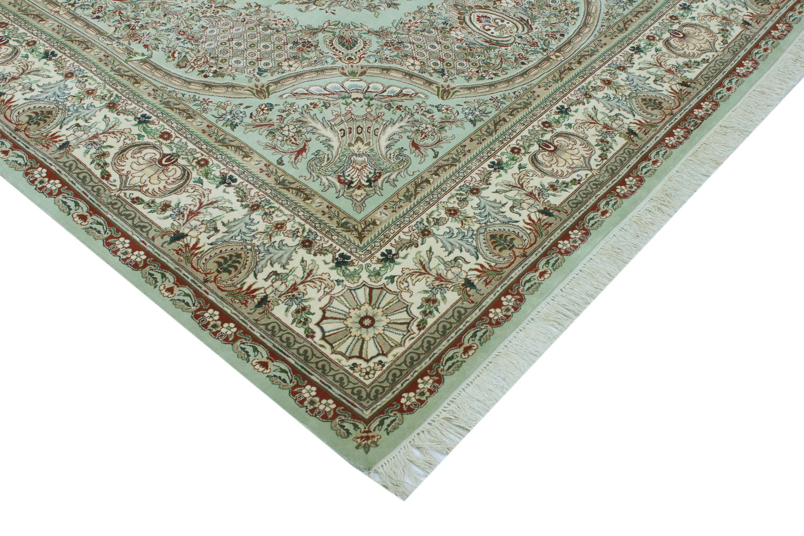 Designed with mesmerizing intricacy and gorgeous color palette, this hand-knotted masterpiece demonstrates the beauty and electrifying thrill of Pak Persian art. These meticulously handcrafted Pak-Persian rug is made with pure wool and features breathtaking traditional and Transitional designs in bold lush color pallet. Known for their intricate designs these rugs are a reproduction of Persian rugs, made in Pakistan with unique Mughal designs. Made by master weavers using the same Persian texture, design and dying technique, we wanted to produce the most significant manifestation of the Persian art, life and culture. This rug is most famous for its exceptional quality, incredible designs, patterns and vibrant rich color. Pak-Persian rugs made with Persian weave with high knot counts, which enables the high intricacy and detail found in the patterns are also referred to as “State of art”, each color adds a rich beautiful detail in the artwork of this rug. The design, color and beautiful chromatic composition with a vibrant sheen with traditional and transitional designs, exude beauty, elegance and quality make this rug a masterpiece of its own.