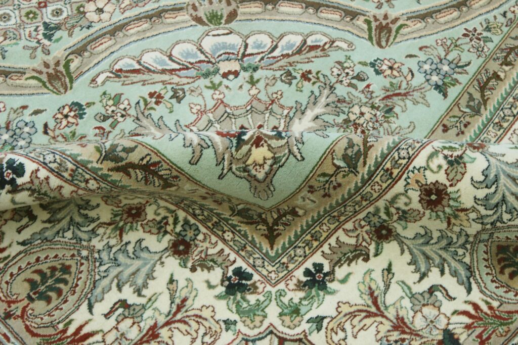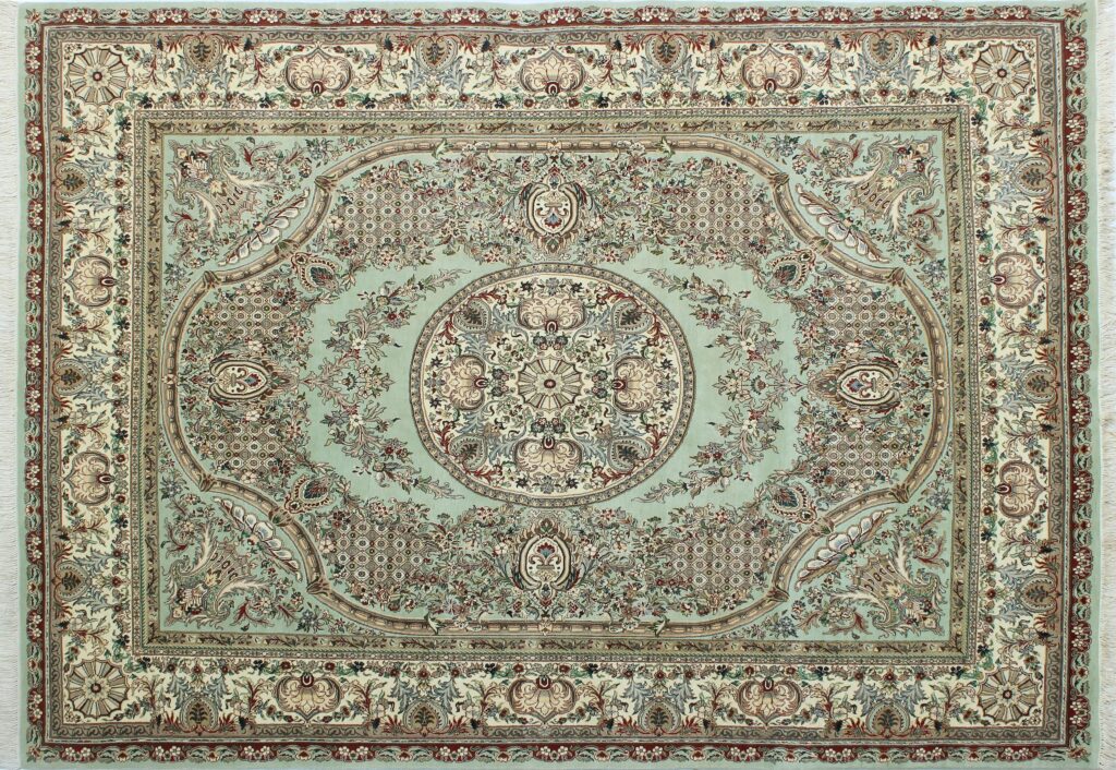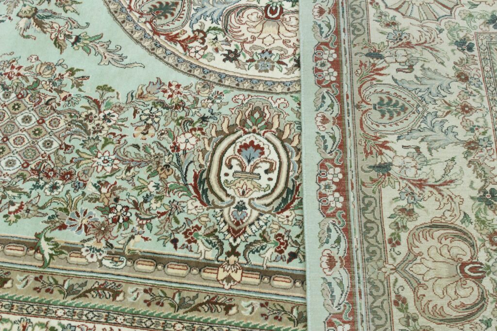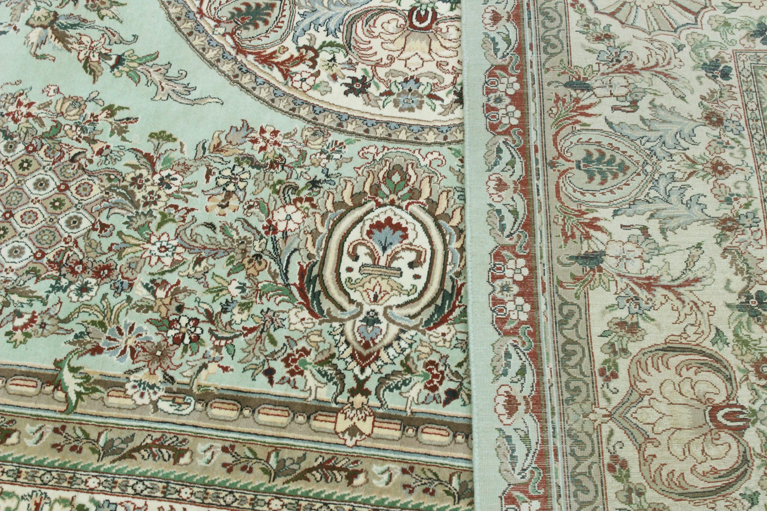 Designed with mesmerizing intricacy and gorgeous color palette, this hand-knotted masterpiece demonstrates the beauty and electrifying thrill of Pak Persian art. These meticulously handcrafted Pak-Persian rug is made with pure wool and features breathtaking traditional and Transitional designs in bold lush color pallet. Known for their intricate designs these rugs are a reproduction of Persian rugs, made in Pakistan with unique Mughal designs. Made by master weavers using the same Persian texture, design and dying technique, we wanted to produce the most significant manifestation of the Persian art, life and culture. This rug is most famous for its exceptional quality, incredible designs, patterns and vibrant rich color. Pak-Persian rugs made with Persian weave with high knot counts, which enables the high intricacy and detail found in the patterns are also referred to as “State of art”, each color adds a rich beautiful detail in the artwork of this rug. The design, color and beautiful chromatic composition with a vibrant sheen with traditional and transitional designs, exude beauty, elegance and quality make this rug a masterpiece of its own.