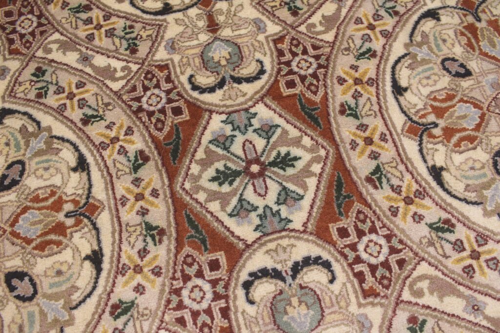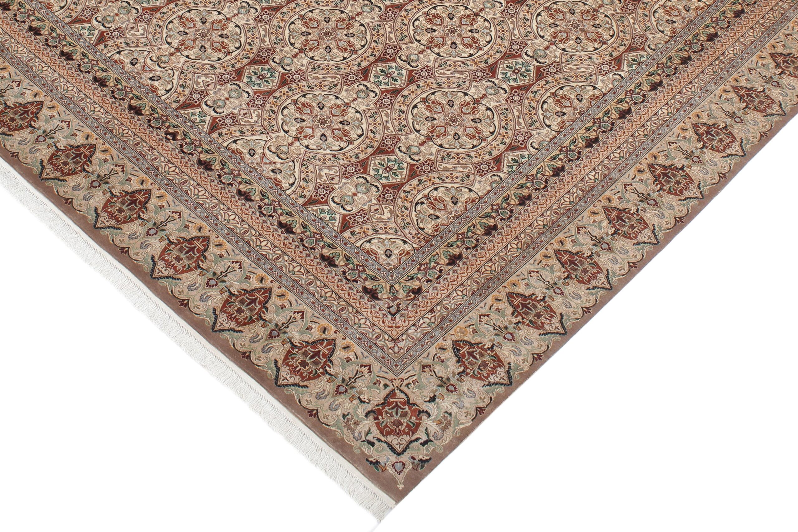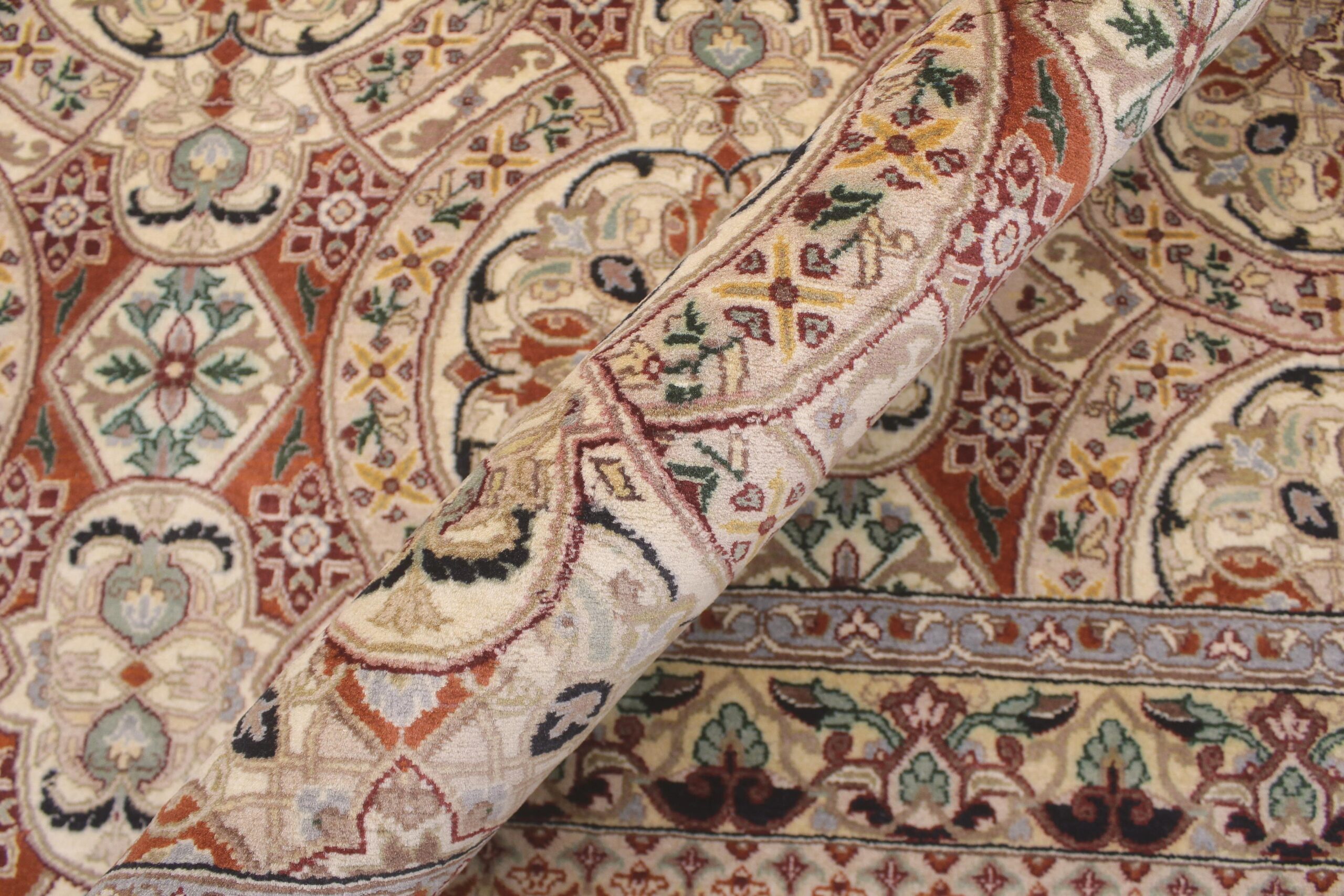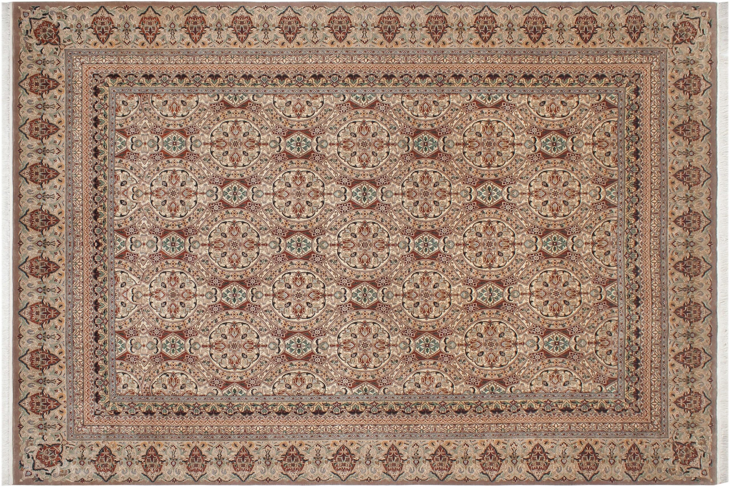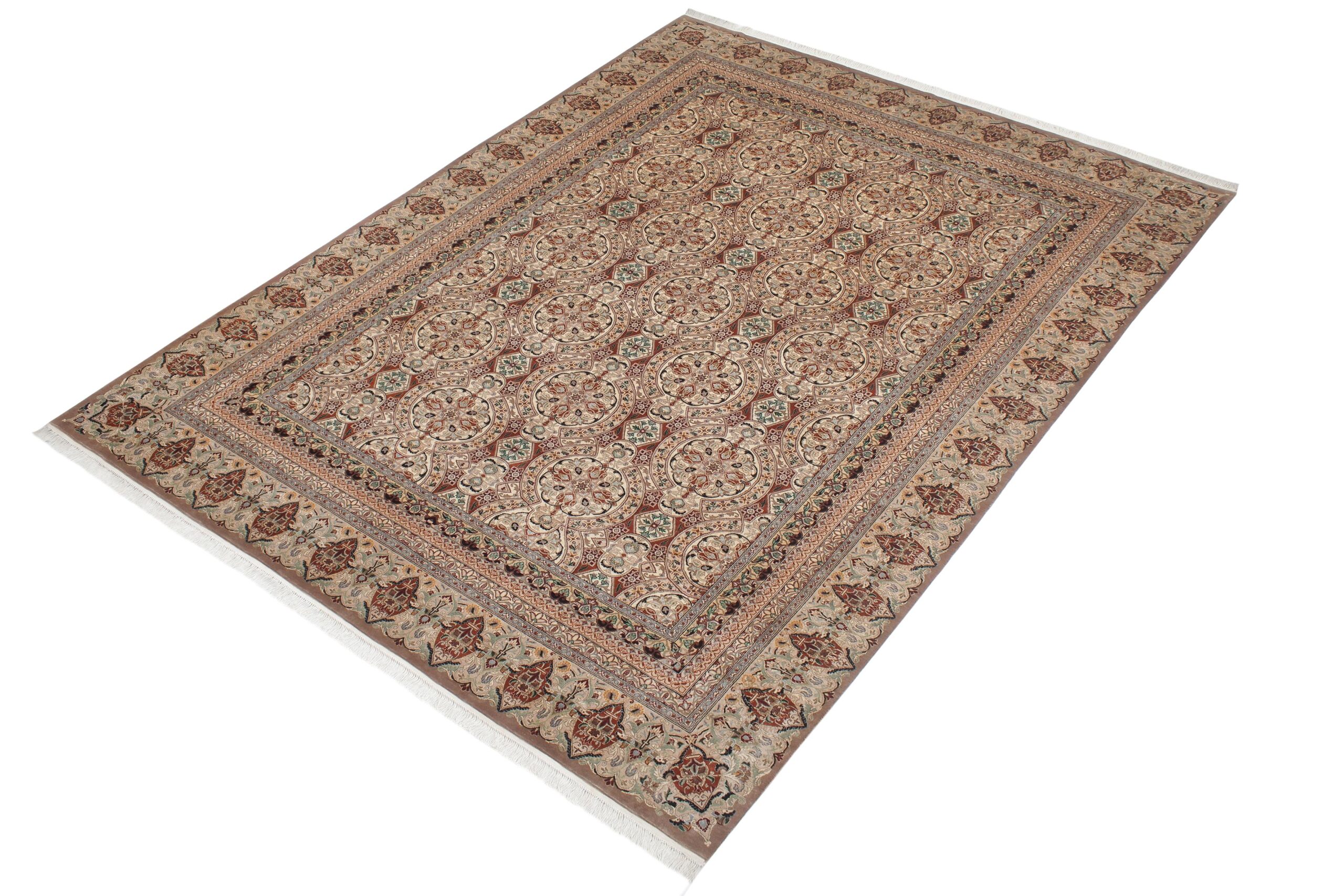 Designed with mesmerizing intricacy and gorgeous color palette, this hand-knotted masterpiece demonstrates the beauty and electrifying thrill of Pak Persian art. These meticulously handcrafted Pak-Persian rug is made with pure wool and features breathtaking traditional and transitional designs in bold lush color pallet. Known for their intricate designs these rugs are a reproduction of Persian rugs, made in Pakistan with unique Mughal designs. Made by master weavers using the same Persian texture, design and dying technique, we wanted to produce the most significant manifestation of the Persian art, life and culture. This rug is most famous for its exceptional quality, incredible designs, patterns and vibrant rich color. Pak-Persian rugs made with Persian weave with high knot counts, which enables the high intricacy and detail found in the patterns are also referred to as “State of art”, each color adds a rich beautiful detail in the artwork of this rug. The design, color and beautiful chromatic composition with a vibrant sheen with traditional and transitional designs, exude beauty, elegance and quality make this rug a masterpiece of its own.