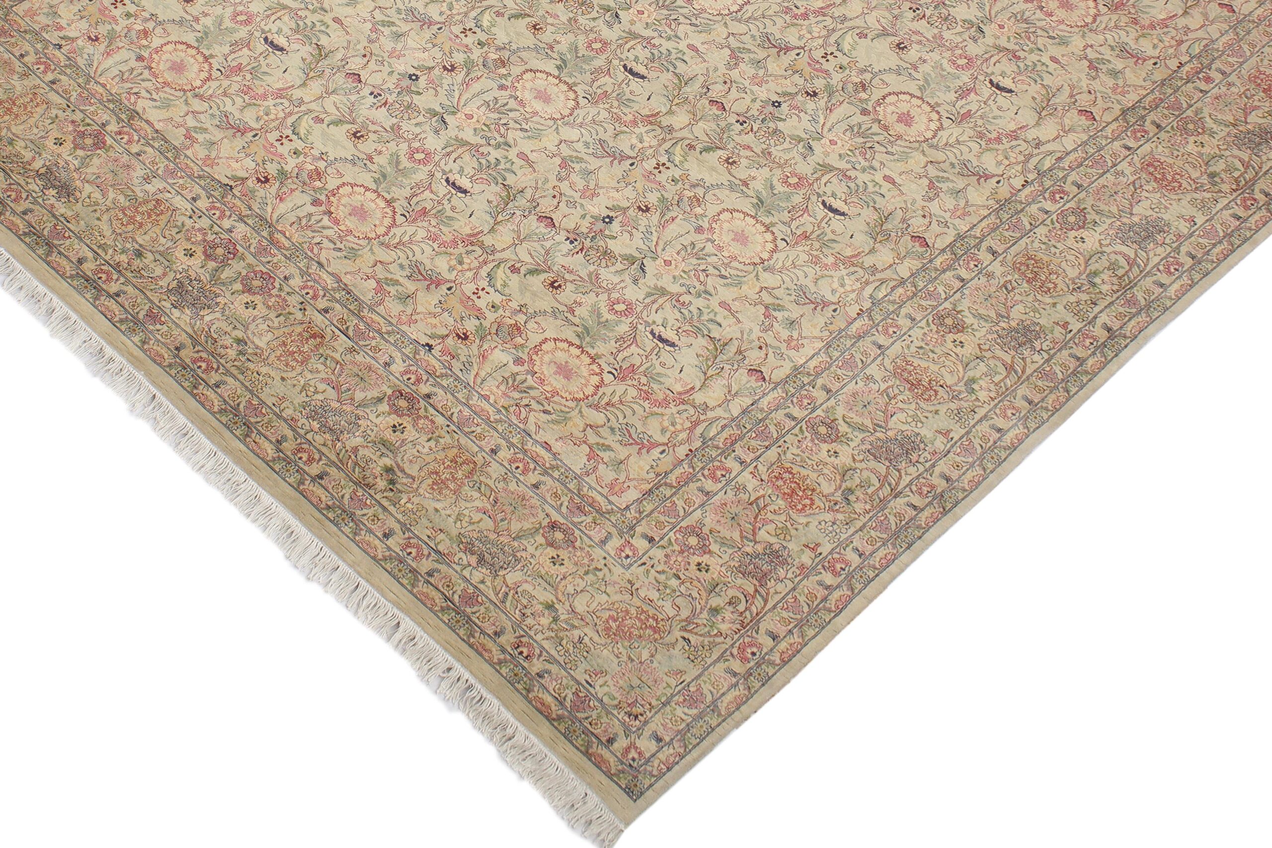 Designed with mesmerizing intricacy and gorgeous color palette, this hand-knotted masterpiece demonstrates the beauty and electrifying thrill of Pak Persian art. These meticulously handcrafted Pak-Persian rug is made with pure wool and features breathtaking traditional and transitional designs in bold lush color pallet. Known for their intricate designs these rugs are a reproduction of Persian rugs, made in Pakistan with unique Mughal designs. Made by master weavers using the same Persian texture, design and dying technique, we wanted to produce the most significant manifestation of the Persian art, life and culture. This rug is most famous for its exceptional quality, incredible designs, patterns and vibrant rich color. Pak-Persian rugs made with Persian weave with high knot counts, which enables the high intricacy and detail found in the patterns are also referred to as “State of art”, each color adds a rich beautiful detail in the artwork of this rug. The design, color and beautiful chromatic composition with a vibrant sheen with traditional and transitional designs, exude beauty, elegance and quality make this rug a masterpiece of its own.