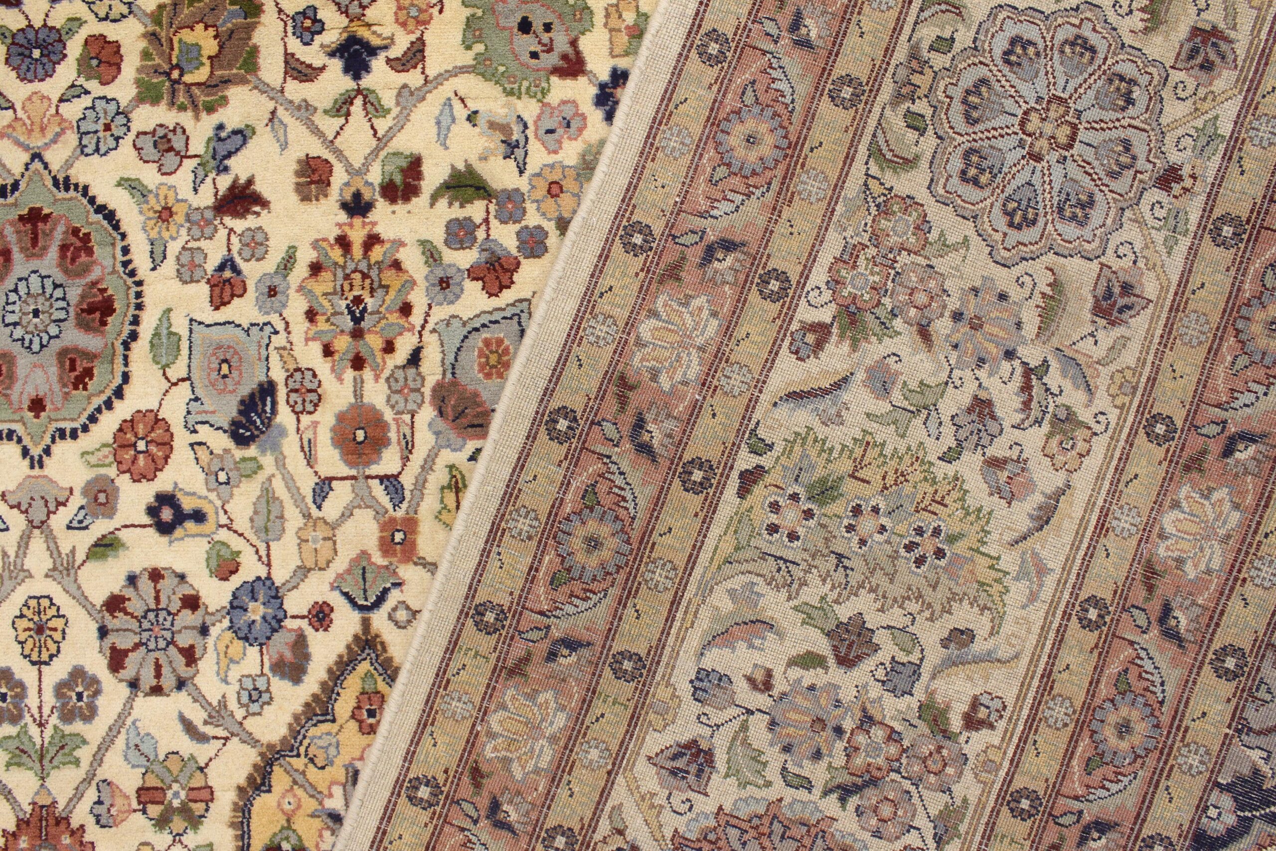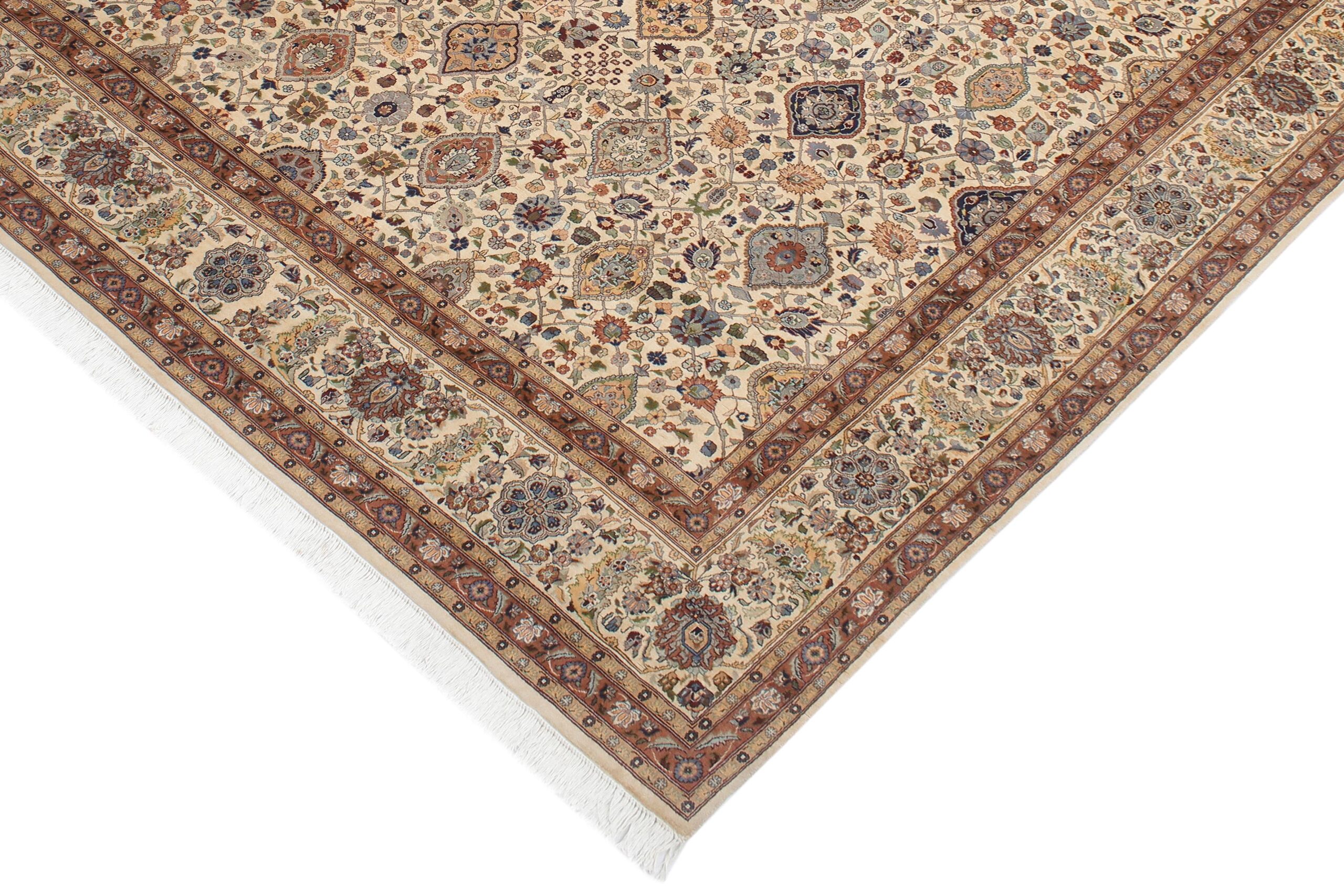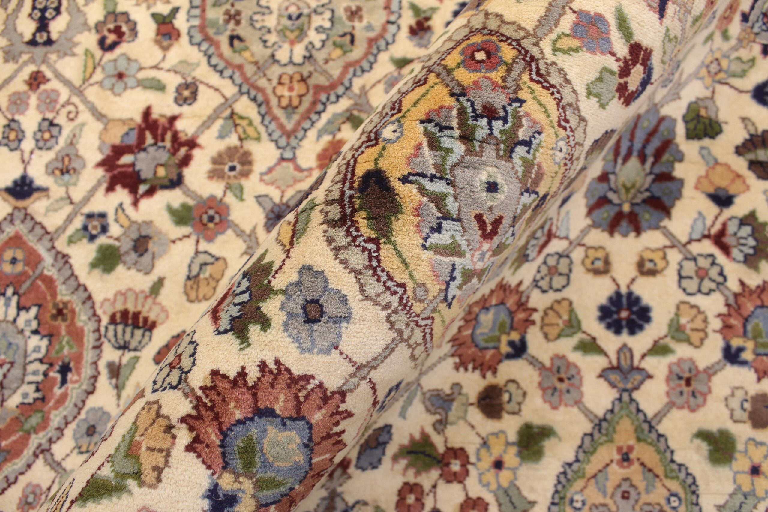 Designed with mesmerizing intricacy and gorgeous color palette, this hand-knotted masterpiece demonstrates the beauty and electrifying thrill of Pak Persian art. These meticulously handcrafted Pak-Persian rug is made with pure wool and features breathtaking traditional and transitional designs in bold lush color pallet. Known for their intricate designs these rugs are a reproduction of Persian rugs, made in Pakistan with unique Mughal designs. Made by master weavers using the same Persian texture, design and dying technique, we wanted to produce the most significant manifestation of the Persian art, life and culture. This rug is most famous for its exceptional quality, incredible designs, patterns and vibrant rich color. Pak-Persian rugs made with Persian weave with high knot counts, which enables the high intricacy and detail found in the patterns are also referred to as “State of art”, each color adds a rich beautiful detail in the artwork of this rug. The design, color and beautiful chromatic composition with a vibrant sheen with traditional and transitional designs, exude beauty, elegance and quality make this rug a masterpiece of its own.
