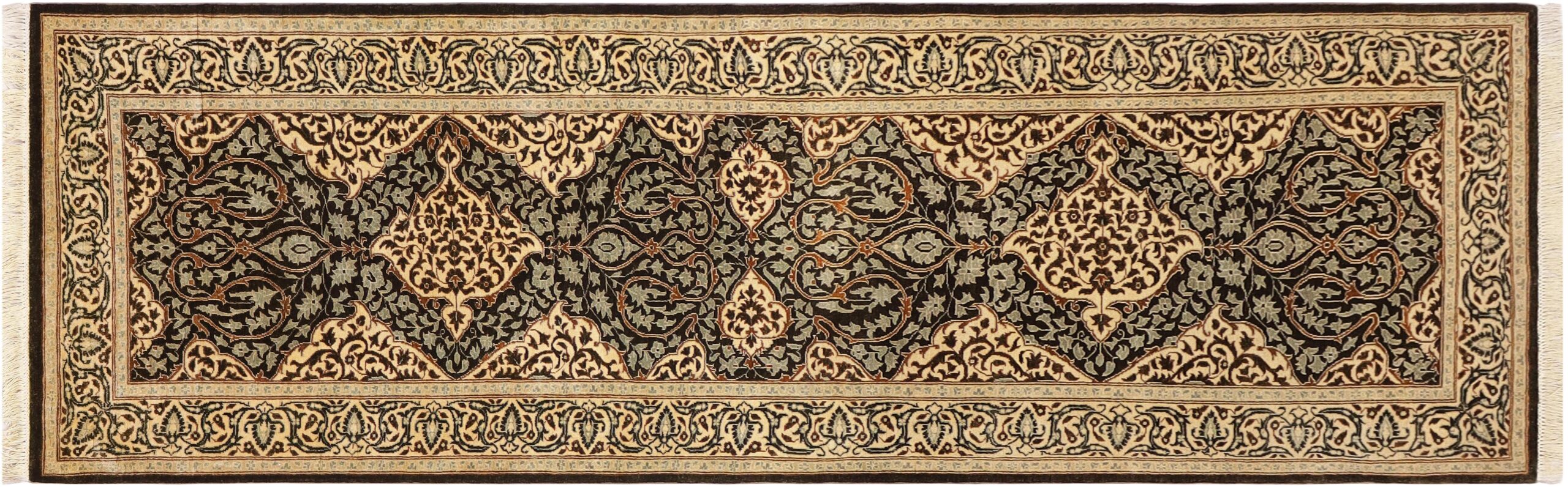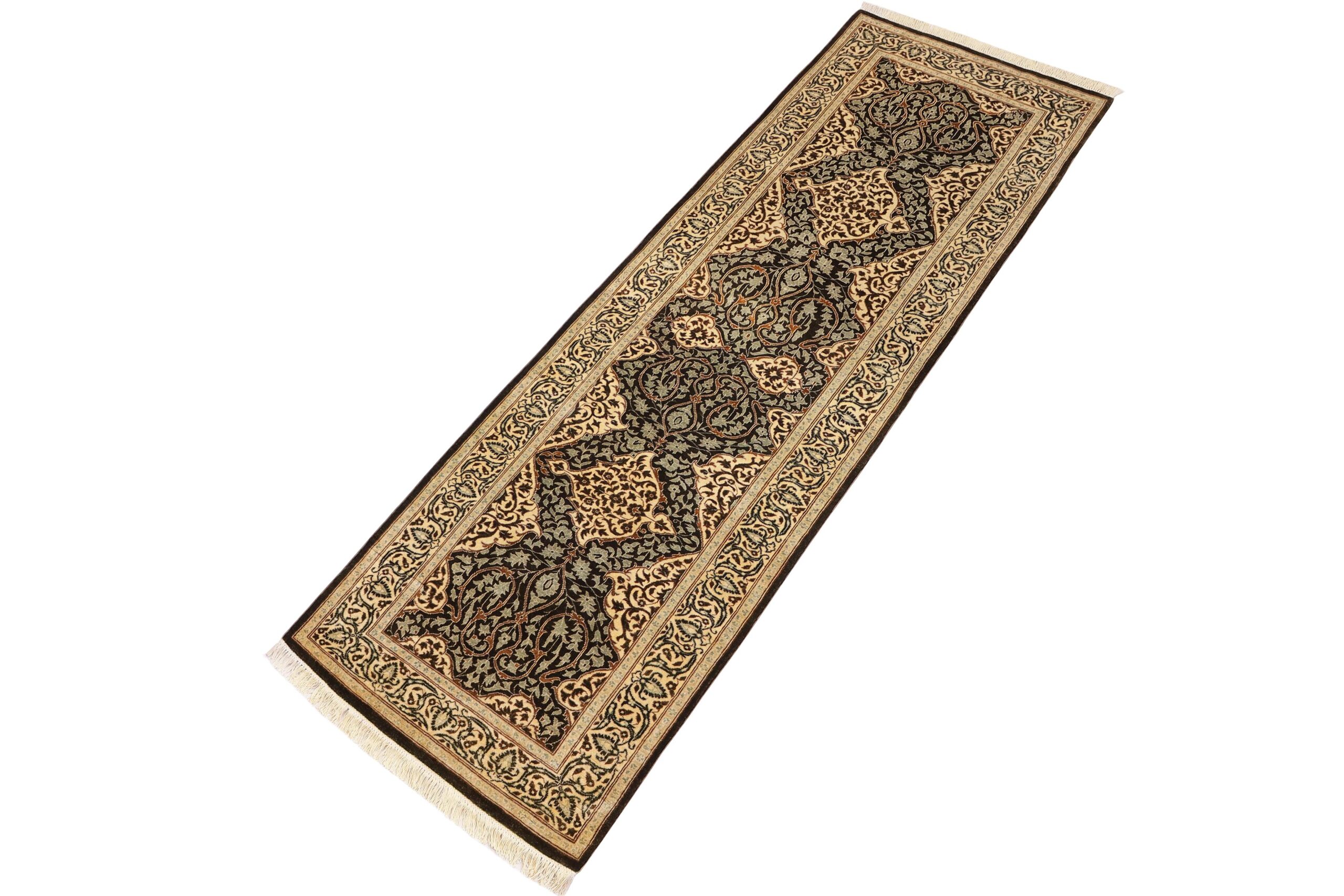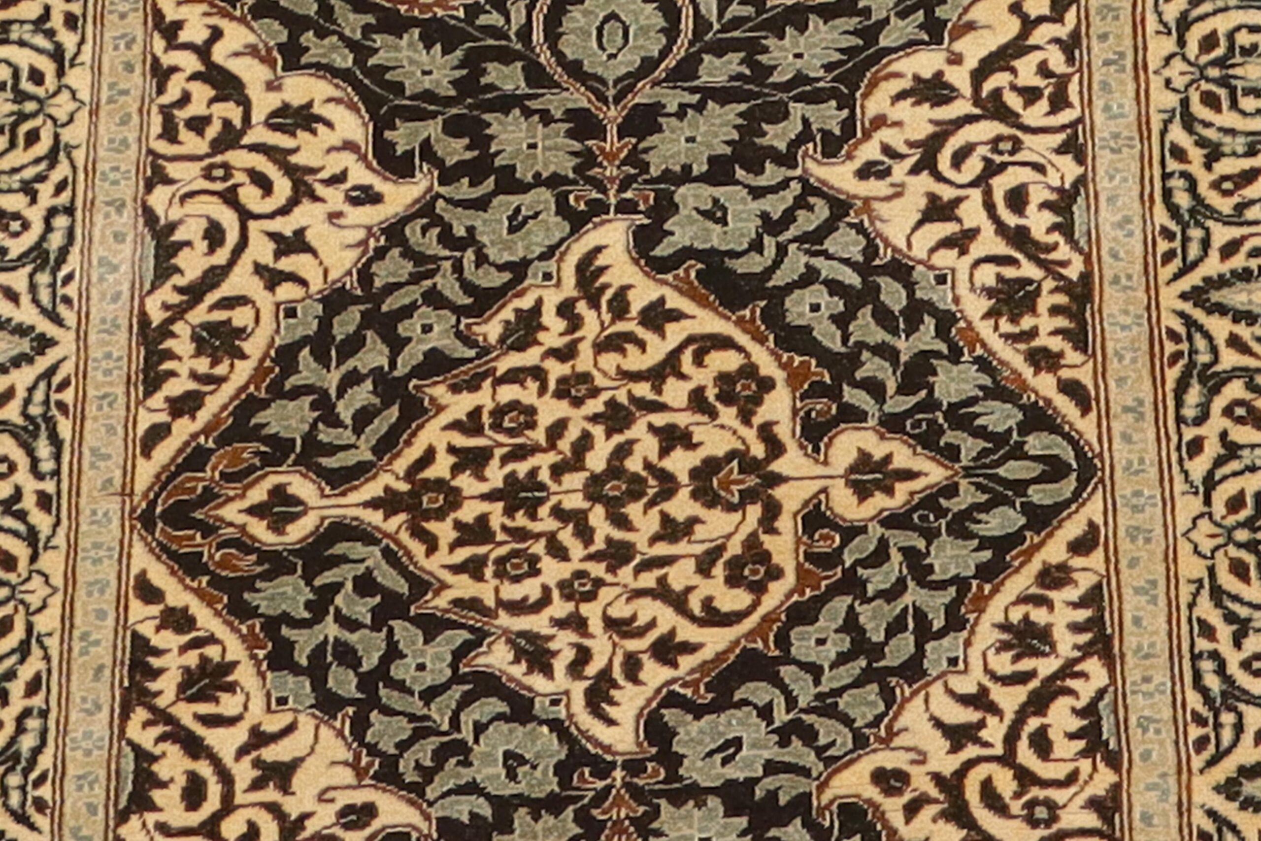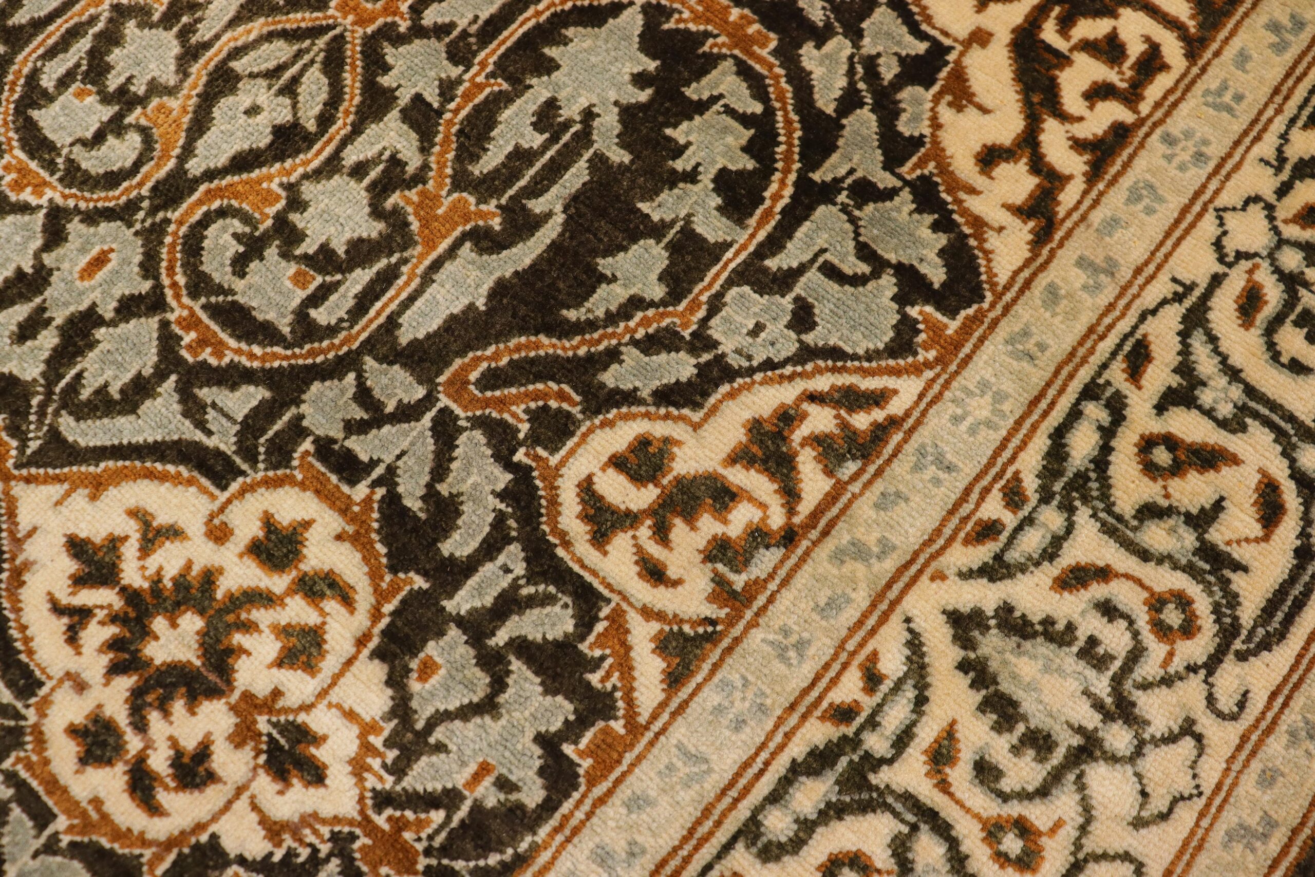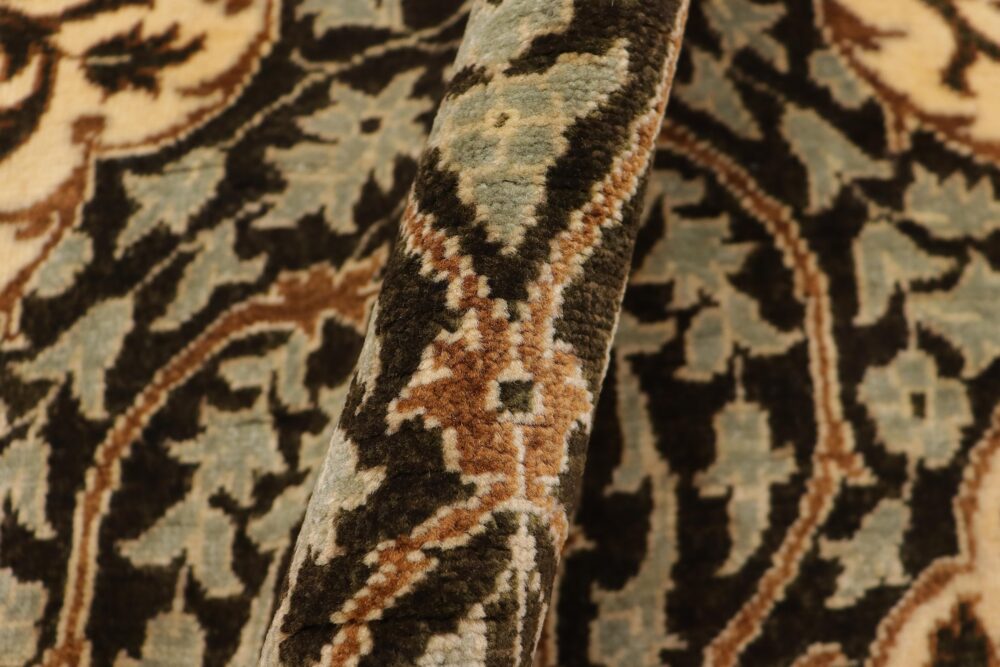 Designed with a mesmerizing intricate traditional motif this glorious hand knotted rug is a masterpiece that will fill any space with sophistication and grace. An exhilarating color pallet with an elaborate design, this masterpiece features luxurious hand spun wool with all vegetable dyes to add comfort and style to your décor. The design, color and beautiful chromatic composition with a sheen in traditional and transitional designs, exude beauty, elegance and quality make this rug a masterpiece of its own.