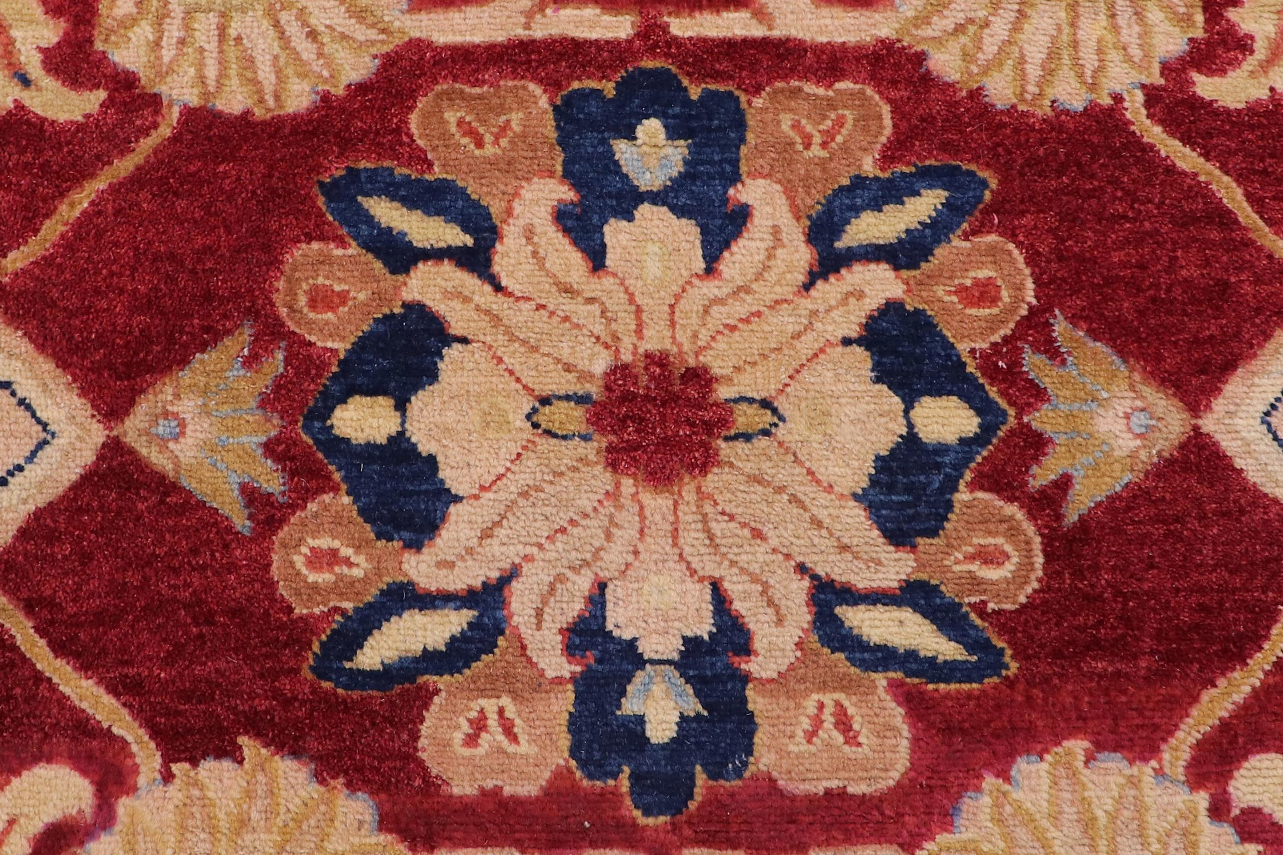 Designed with mesmerizing intricacy and gorgeous color palette, this hand-knotted masterpiece demonstrates the beauty and electrifying thrill of Pak Persian art. Made with all handspun wool and vegetable dyes with KPSI of 250-300, this meticulously handcrafted Pak-Persian rug is made with pure wool and features breathtaking traditional and transitional designs in the beautiful lush color pallet. Known for their intricate designs these rugs are a reproduction of Persian rugs, made in Pakistan with unique Mughal designs. Made by master weavers using the same Persian texture, design, and vegetable dying technique, we wanted to create the most significant manifestation of Persian art, life, and culture. This rug is most famous for its exceptional quality, incredible designs, patterns, and vibrant rich color. Pak-Persian rugs made with Persian weave with high knot counts, which enables the high intricacy and detail found in the patterns are also referred to as State of art, each color adds a rich beautiful detail in the artwork of this rug. The design, color and beautiful chromatic composition with a vibrant sheen with traditional and transitional designs exude beauty, elegance, and quality make this rug a masterpiece of its own.