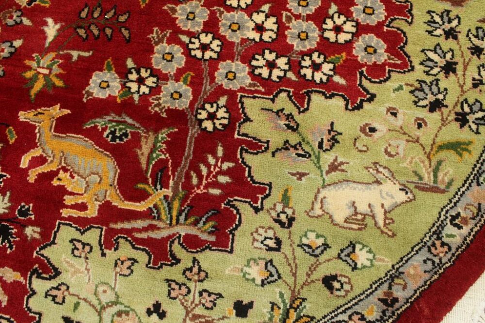 Designed with mesmerizing intricacy and gorgeous color palette, this hand-knotted masterpiece demonstrates the beauty and electrifying thrill of Pak Persian art. These meticulously handcrafted Pak-Persian rug is made with pure wool and features breathtaking traditional and transitional designs in bold lush color pallet. Known for their intricate designs these rugs are a reproduction of Persian rugs, made in Pakistan with unique Mughal designs. Made by master weavers using the same Persian texture, design and dying technique, we wanted to produce the most significant manifestation of the Persian art, life and culture. This rug is most famous for its exceptional quality, incredible designs, patterns and vibrant rich color. Pak-Persian rugs made with Persian weave with high knot counts, which enables the high intricacy and detail found in the patterns are also referred to as “State of art”, each color adds a rich beautiful detail in the artwork of this rug. The design, color and beautiful chromatic composition with a vibrant sheen with traditional and transitional designs, exude beauty, elegance and quality make this rug a masterpiece of its own.