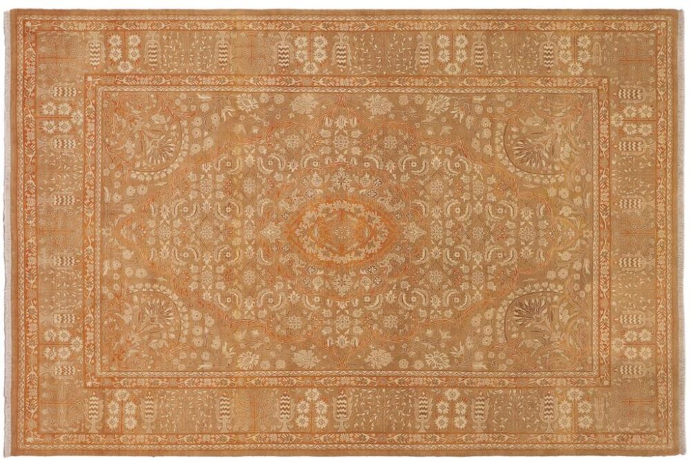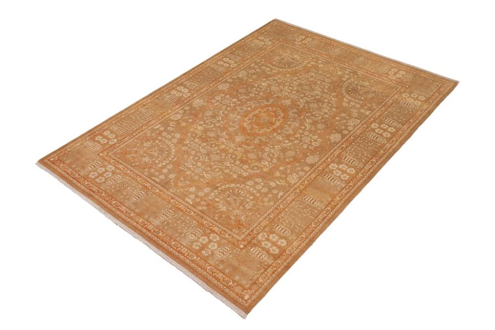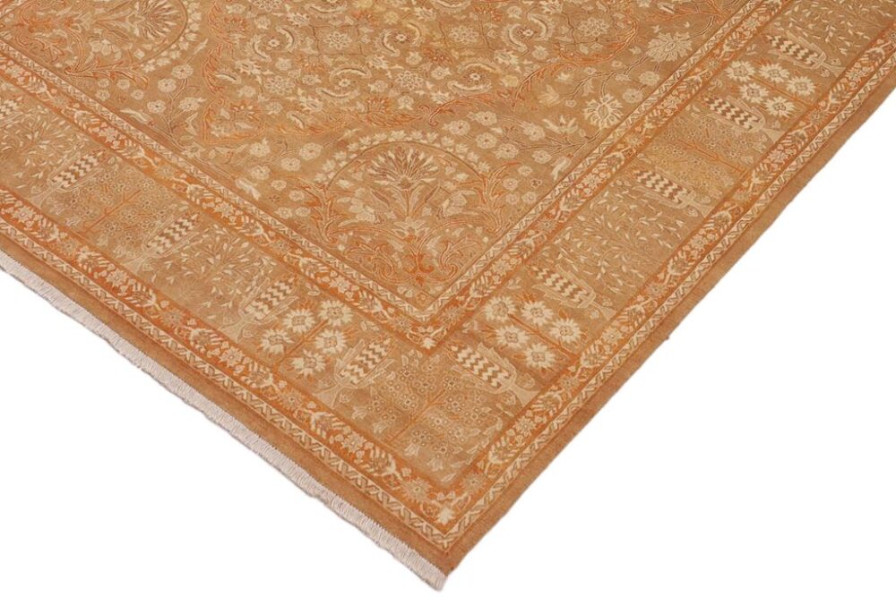Designed with mesmerizing intricacy and gorgeous color palette, this hand-knotted masterpiece demonstrates the beauty and electrifying thrill of Pak Persian art. Made with all handspun wool and vegetable dyes with KPSI of 250-300, this meticulously handcrafted Pak-Persian rug is made with pure wool and features breathtaking traditional and transitional designs in the beautiful lush color pallet. Known for their intricate designs these rugs are a reproduction of Persian rugs, made in Pakistan with unique Mughal designs. Made by master weavers using the same Persian texture, design, and vegetable dying technique, we wanted to create the most significant manifestation of Persian art, life, and culture. This rug is most famous for its exceptional quality, incredible designs, patterns, and vibrant rich color. Pak-Persian rugs made with Persian weave with high knot counts, which enables the high intricacy and detail found in the patterns are also referred to as State of art, each color adds a rich beautiful detail in the artwork of this rug. The design, color and beautiful chromatic composition with a vibrant sheen with traditional and transitional designs exude beauty, elegance, and quality make this rug a masterpiece of its own.