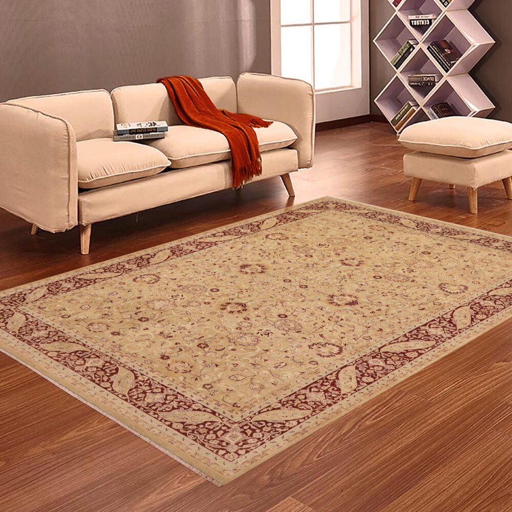 Designed with mesmerizing intricacy and gorgeous color palette, this hand-knotted masterpiece demonstrates the beauty and electrifying thrill of Pak Persian art. These meticulously handcrafted Pak-Persian rug is made with pure wool and features breathtaking traditional and transitional designs in bold lush color pallet. Known for their intricate designs these rugs are a reproduction of Persian rugs, made in Pakistan with unique Mughal designs. Made by master weavers using the same Persian texture, design and dying technique, we wanted to produce the most significant manifestation of the Persian art, life and culture. This rug is most famous for its exceptional quality, incredible designs, patterns and vibrant rich color. Pak-Persian rugs made with Persian weave with high knot counts, which enables the high intricacy and detail found in the patterns are also referred to as “State of art”, each color adds a rich beautiful detail in the artwork of this rug. The design, color and beautiful chromatic composition with a vibrant sheen with traditional and transitional designs, exude beauty, elegance and quality make this rug a masterpiece of its own.