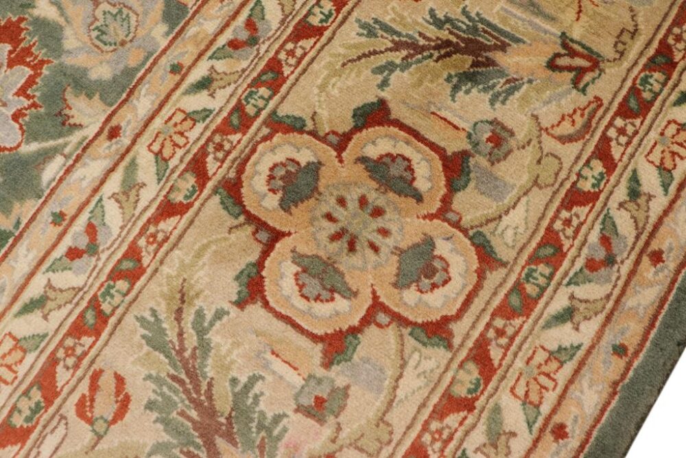 Designed with mesmerizing intricacy and gorgeous color palette, this hand-knotted masterpiece demonstrates the beauty and electrifying thrill of Pak Persian art. These meticulously handcrafted Pak-Persian rug is made with pure wool and features breathtaking traditional and Transitional designs in bold lush color pallet. Known for their intricate designs these rugs are a reproduction of Persian rugs, made in Pakistan with unique Mughal designs. Made by master weavers using the same Persian texture, design and dying technique, we wanted to produce the most significant manifestation of the Persian art, life and culture. This rug is most famous for its exceptional quality, incredible designs, patterns and vibrant rich color. Pak-Persian rugs made with Persian weave with high knot counts, which enables the high intricacy and detail found in the patterns are also referred to as State of art, each color adds a rich beautiful detail in the artwork of this rug. The design, color and beautiful chromatic composition with a vibrant sheen with traditional and transitional designs, exude beauty, elegance and quality make this rug a masterpiece of its own.