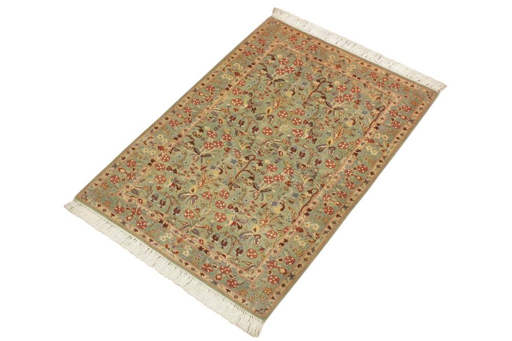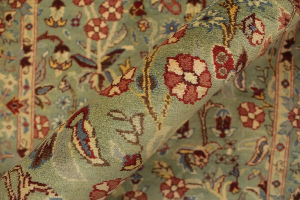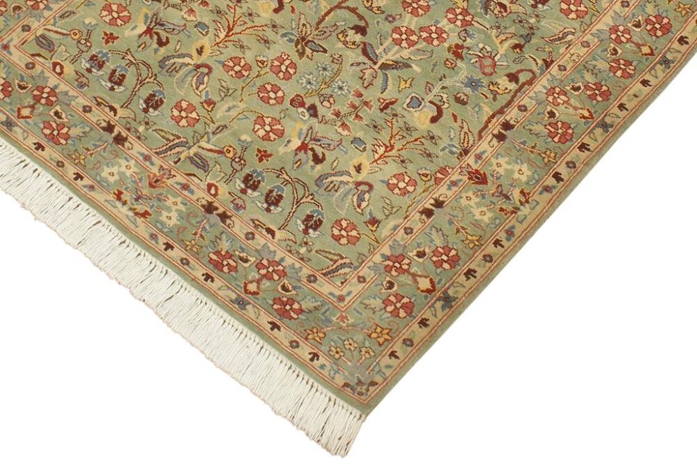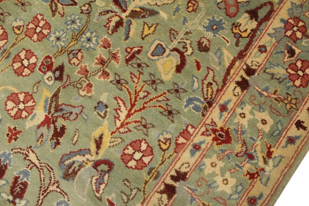 Designed with mesmerizing intricacy and gorgeous color palette, this hand-knotted masterpiece demonstrates the beauty and electrifying thrill of Pak Persian art. These meticulously handcrafted Pak-Persian rug is made with pure wool and features breathtaking traditional and transitional designs in bold lush color pallet. Known for their intricate designs these rugs are a reproduction of Persian rugs, made in Pakistan with unique Mughal designs. Made by master weavers using the same Persian texture, design and dying technique, we wanted to produce the most significant manifestation of the Persian art, life and culture. This rug is most famous for its exceptional quality, incredible designs, patterns and vibrant rich color. Pak-Persian rugs made with Persian weave with high knot counts, which enables the high intricacy and detail found in the patterns are also referred to as “State of art”, each color adds a rich beautiful detail in the artwork of this rug. The design, color and beautiful chromatic composition with a vibrant sheen with traditional and transitional designs, exude beauty, elegance and quality make this rug a masterpiece of its own.
