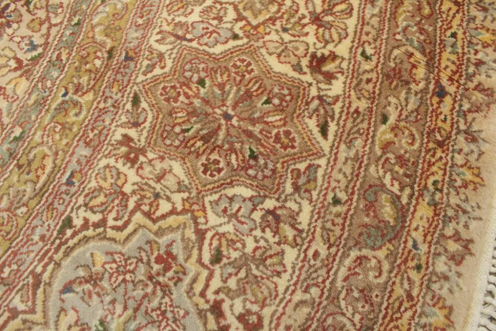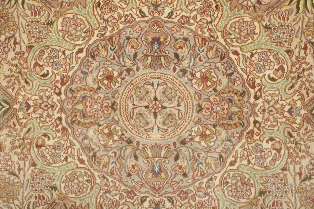Designed with mesmerizing intricacy and gorgeous color palette, this hand-knotted masterpiece demonstrates the beauty and electrifying thrill of Pak Persian art. These meticulously handcrafted Pak-Persian rug is made with pure wool and features breathtaking traditional and Transitional designs in bold lush color pallet. Known for their intricate designs these rugs are a reproduction of Persian rugs, made in Pakistan with unique Mughal designs. Made by master weavers using the same Persian texture, design and dying technique, we wanted to produce the most significant manifestation of the Persian art, life and culture. This rug is most famous for its exceptional quality, incredible designs, patterns and vibrant rich color. Pak-Persian rugs made with Persian weave with high knot counts, which enables the high intricacy and detail found in the patterns are also referred to as State of art, each color adds a rich beautiful detail in the artwork of this rug. The design, color and beautiful chromatic composition with a vibrant sheen with traditional and transitional designs, exude beauty, elegance and quality make this rug a masterpiece of its own.
