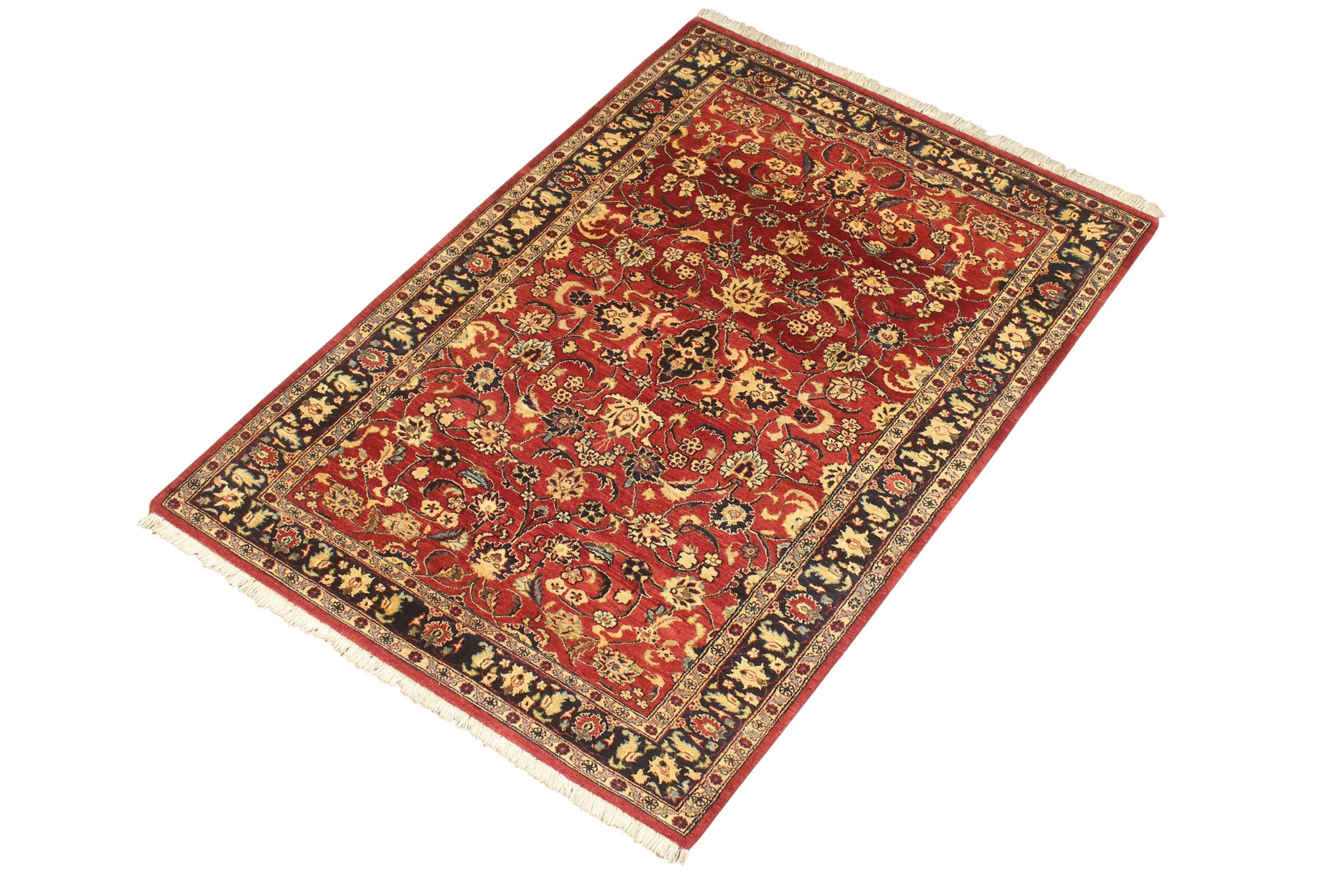 Designed with mesmerizing intricacy and gorgeous color palette, this hand-knotted masterpiece demonstrates the beauty and electrifying thrill of Pak Persian art. Made with all handspun wool and vegetable dyes with KPSI of 250-300, this meticulously handcrafted Pak-Persian rug is made with pure wool and features breathtaking traditional and transitional designs in the beautiful lush color pallet. Known for their intricate designs these rugs are a reproduction of Persian rugs, made in Pakistan with unique Mughal designs. Made by master weavers using the same Persian texture, design, and vegetable dying technique, we wanted to create the most significant manifestation of Persian art, life, and culture. This rug is most famous for its exceptional quality, incredible designs, patterns, and vibrant rich color. Pak-Persian rugs made with Persian weave with high knot counts, which enables the high intricacy and detail found in the patterns are also referred to as State of art, each color adds a rich beautiful detail in the artwork of this rug. The design, color and beautiful chromatic composition with a vibrant sheen with traditional and transitional designs exude beauty, elegance, and quality make this rug a masterpiece of its own.