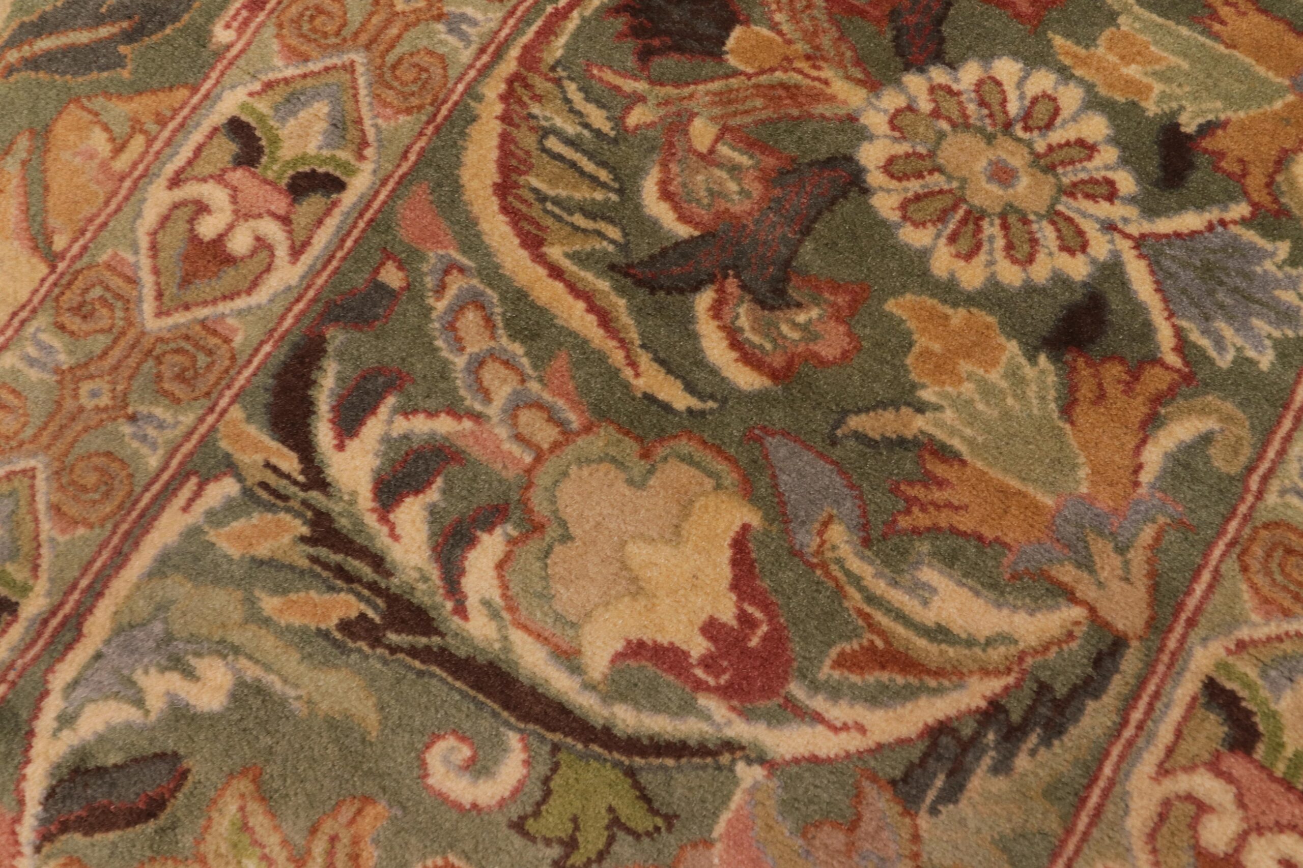 Designed with mesmerizing intricacy and gorgeous color palette, this hand-knotted masterpiece demonstrates the beauty and electrifying thrill of Pak Persian art. These meticulously handcrafted Pak-Persian rug is made with pure wool and features breathtaking traditional and Transitional designs in bold lush color pallet. Known for their intricate designs these rugs are a reproduction of Persian rugs, made in Pakistan with unique Mughal designs. Made by master weavers using the same Persian texture, design and dying technique, we wanted to produce the most significant manifestation of the Persian art, life and culture. This rug is most famous for its exceptional quality, incredible designs, patterns and vibrant rich color. Pak-Persian rugs made with Persian weave with high knot counts, which enables the high intricacy and detail found in the patterns are also referred to as “State of art”, each color adds a rich beautiful detail in the artwork of this rug. The design, color and beautiful chromatic composition with a vibrant sheen with traditional and transitional designs, exude beauty, elegance and quality make this rug a masterpiece of its own.