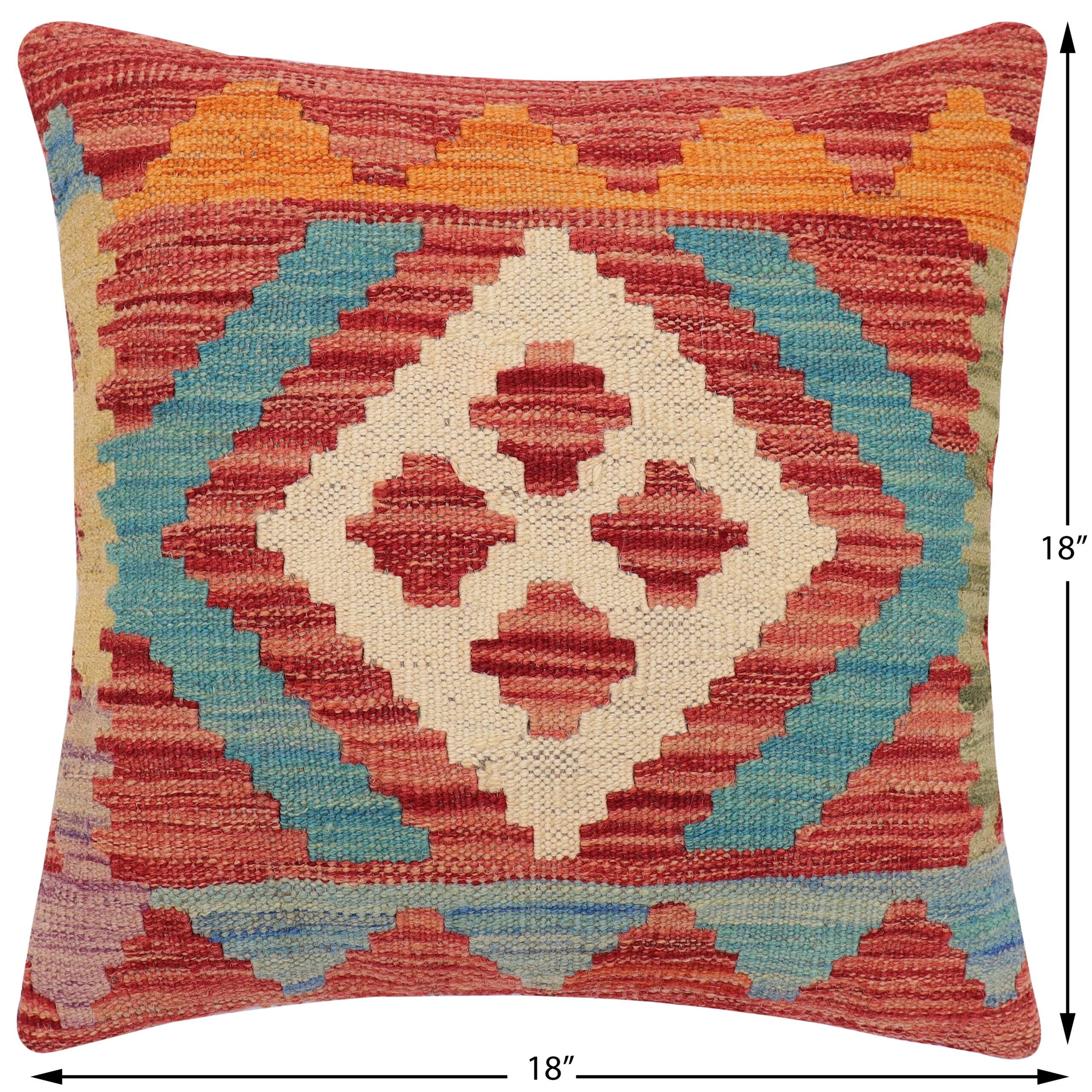 Embellish your home with this timeless casual chic handmade Southwestern Kilim throw pillow covers made with wool and cotton. Constructed on a loom by Nomad Turkman people with hand spun wool and Natural Vegetable dyes these beautiful Kilim pillow covers are known for their beautiful repetitive geometrical, naturalistic floral and traditional patterns yet still giving it a moden look. Masterfully artisan-crafted on traditional Kilim looms with a contemporary fashion palette producing bold intricate sharp patterns making them a standout piece in any décor.